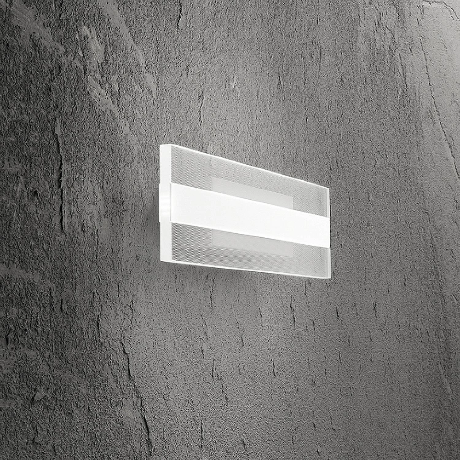 Applique da parete con telaio in metallo verniciato a polvere di colore bianco opaco e diffusore in plexiglass trasparente. È un'ottima soluzione di illuminazione per interni moderni. Il suo design semplice ed elegante garantisce una diffusione uniforme della luce. La sua forma snella permette di adattarsi a qualsiasi ambiente e stile di arredamento. Inoltre, grazie alla sua fonte luminosa a LED integrata, questa applique è anche molto efficiente dal punto di vista energetico.