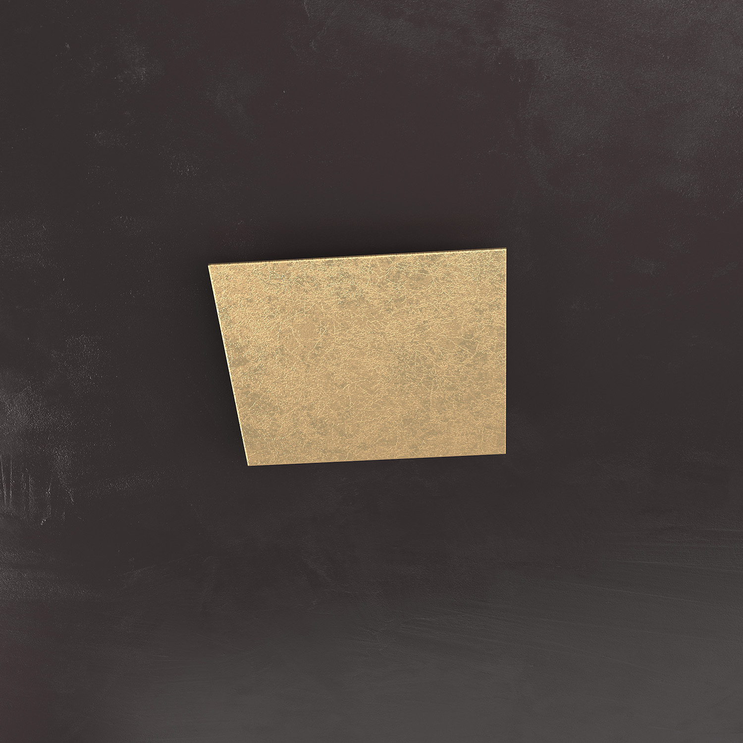 Collezione ECCENTRICLA LUCE ADATTABILE E FLESSIBILELampada quadrata decorativa formata da una lastra di metallo verniciato in finitura foglia oro.. Queste lampade..