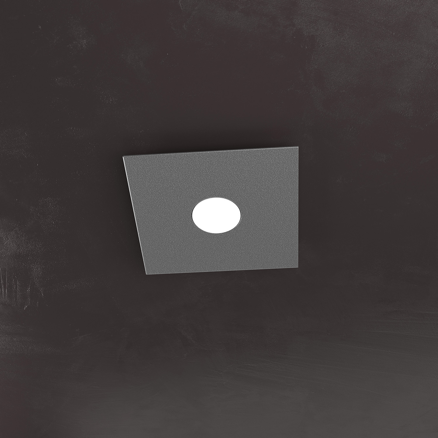 Collezione ECCENTRICLA LUCE ADATTABILE E FLESSIBILELampada quadrata decorativa formata da una lastra di metallo verniciato in finitura grigio antracite.. Queste l..