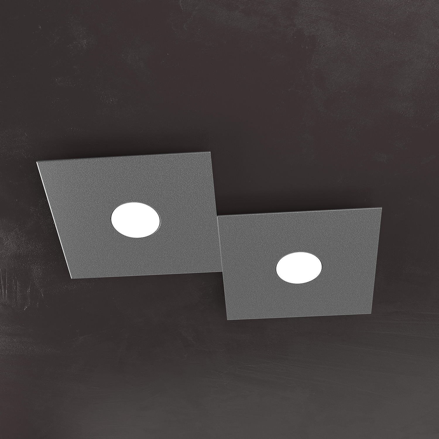 Collezione ECCENTRICLA LUCE ADATTABILE E FLESSIBILELampada 2 luci formata da due lastre quadrate di metallo verniciato in finitura grigio antracite.. Queste lampa..