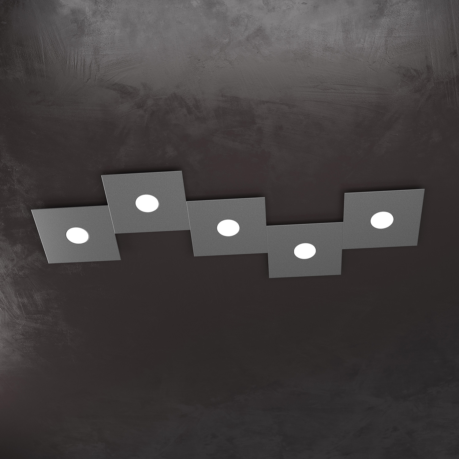 Lampada 5 luci formata da cinque lastre quadrate di metallo verniciato in finitura grigio antracite.. Queste lampade sono componibili e personalizzabili, così puoi creare infinite forme e mix di colori. I componenti base sono due: uno con sorgente luminosa (1156/1L) e uno solo decorativo (1156/1D). Questi componenti possono essere assemblati fra loro per creare infinite forme e mix di colori. Per comodità vengono proposti alcuni kit precomposti con codice dedicato all' interno del sito. La presente collezione in quanto componibile è indicata per risolvere problemi di decentramento tra punto luce e zona da illuminare. Un altro punto di forza del prodotto consiste nel non utilizzare dei led integrati ma una lampadina Gx53 che, una volta montata, arriva a filo della lastra metallica e può essere facilmente sostituita dall’esterno. Scopri la Serie Eccentric e lasciati ispirare dalla sua versatilità e qualità.Questo articolo è disponibile in diverse finiture e/o dimensioni. E' possibile indicarlo nell'apposito campo NOTE presente in conclusione di ordine oppure contattarci dopo aver effettuato l'ordine.