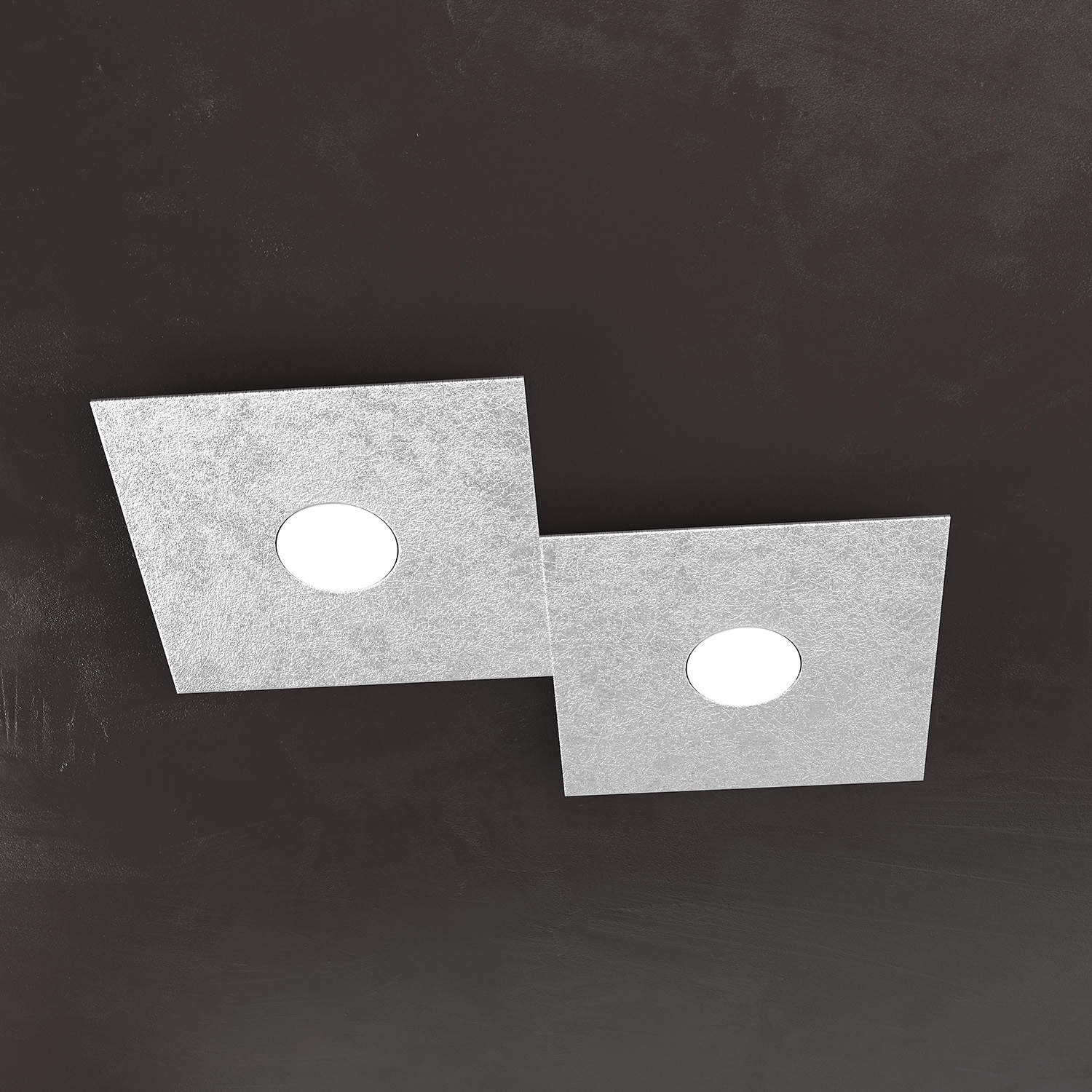 Collezione ECCENTRICLA LUCE ADATTABILE E FLESSIBILELampada 2 luci formata da due lastre quadrate di metallo verniciato in finitura foglia argento.. Queste lampade..