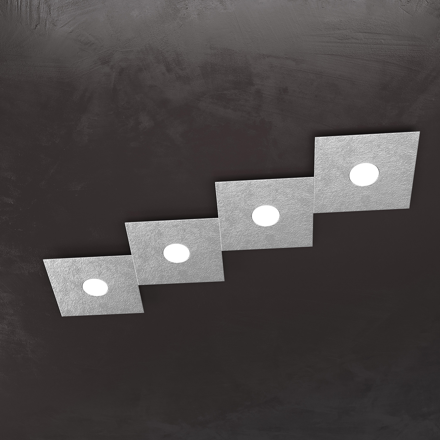 Lampada 4 luci formata da quattro lastre quadrate di metallo verniciato in finitura foglia argento.. Queste lampade sono componibili e personalizzabili, così puoi creare infinite forme e mix di colori. I componenti base sono due: uno con sorgente luminosa (1156/1L) e uno solo decorativo (1156/1D). Questi componenti possono essere assemblati fra loro per creare infinite forme e mix di colori. Per comodità vengono proposti alcuni kit precomposti con codice dedicato all' interno del sito. La presente collezione in quanto componibile è indicata per risolvere problemi di decentramento tra punto luce e zona da illuminare. Un altro punto di forza del prodotto consiste nel non utilizzare dei led integrati ma una lampadina Gx53 che, una volta montata, arriva a filo della lastra metallica e può essere facilmente sostituita dall’esterno. Scopri la Serie Eccentric e lasciati ispirare dalla sua versatilità e qualità.Questo articolo è disponibile in diverse finiture e/o dimensioni. E' possibile indicarlo nell'apposito campo NOTE presente in conclusione di ordine oppure contattarci dopo aver effettuato l'ordine.