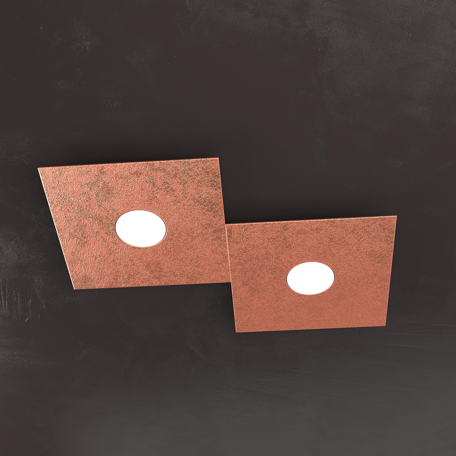 Collezione ECCENTRICLA LUCE ADATTABILE E FLESSIBILELampada 2 luci formata da due lastre quadrate di metallo verniciato in finitura foglia rame.. Queste lampade so..