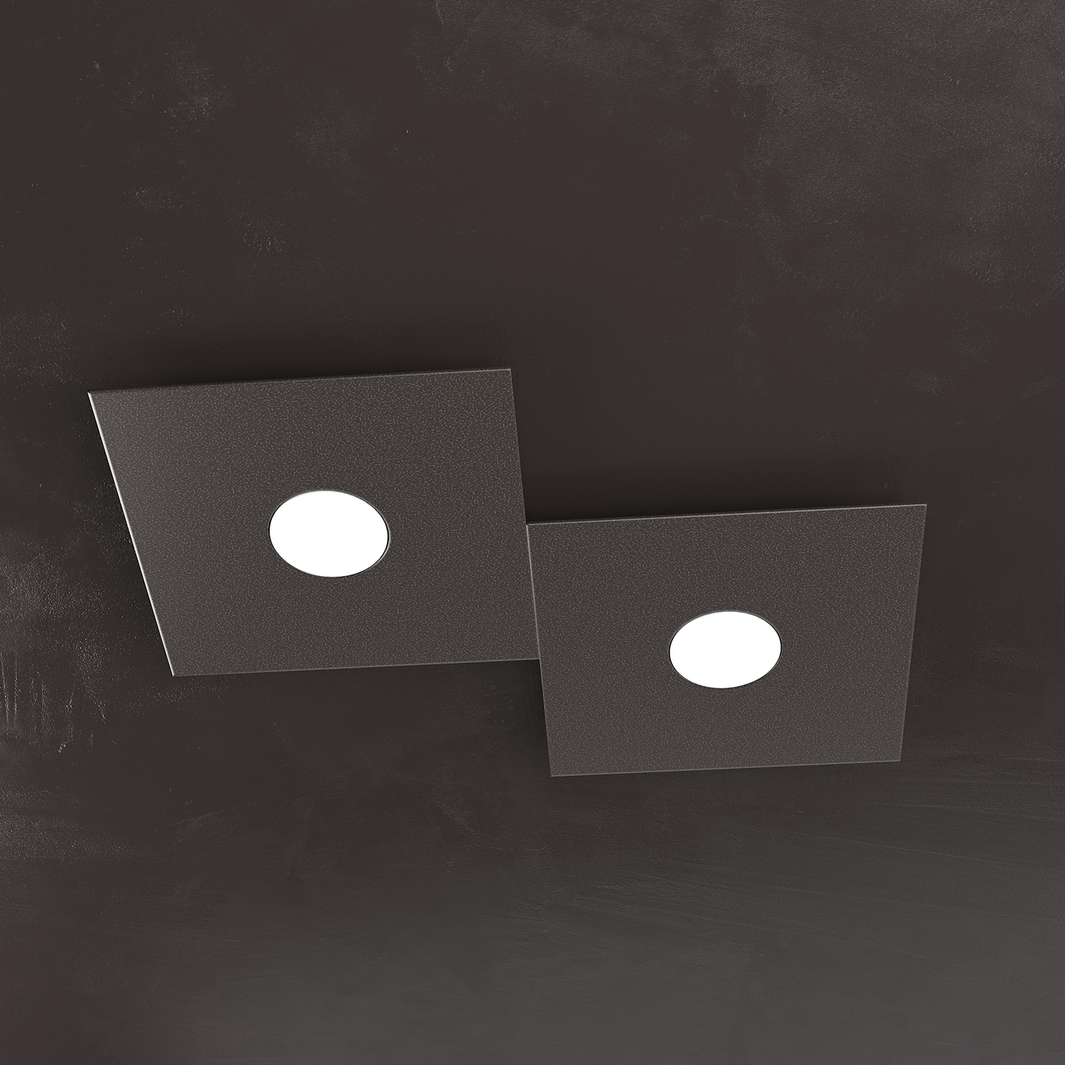 Collezione ECCENTRICLA LUCE ADATTABILE E FLESSIBILELampada 2 luci formata da due lastre quadrate di metallo verniciato in finitura grigio antracite.. Queste lampa..