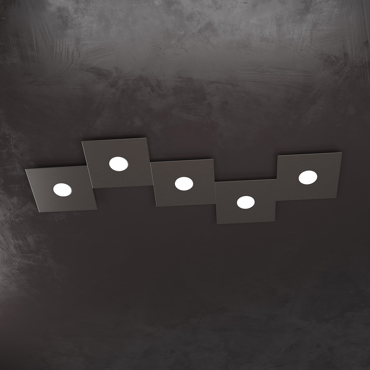 Lampada 5 luci formata da cinque lastre quadrate di metallo verniciato in finitura marrone.. Queste lampade sono componibili e personalizzabili, così puoi creare infinite forme e mix di colori. I componenti base sono due: uno con sorgente luminosa (1156/1L) e uno solo decorativo (1156/1D). Questi componenti possono essere assemblati fra loro per creare infinite forme e mix di colori. Per comodità vengono proposti alcuni kit precomposti con codice dedicato all' interno del sito. La presente collezione in quanto componibile è indicata per risolvere problemi di decentramento tra punto luce e zona da illuminare. Un altro punto di forza del prodotto consiste nel non utilizzare dei led integrati ma una lampadina Gx53 che, una volta montata, arriva a filo della lastra metallica e può essere facilmente sostituita dall’esterno. Scopri la Serie Eccentric e lasciati ispirare dalla sua versatilità e qualità.Questo articolo è disponibile in diverse finiture e/o dimensioni. E' possibile indicarlo nell'apposito campo NOTE presente in conclusione di ordine oppure contattarci dopo aver effettuato l'ordine.