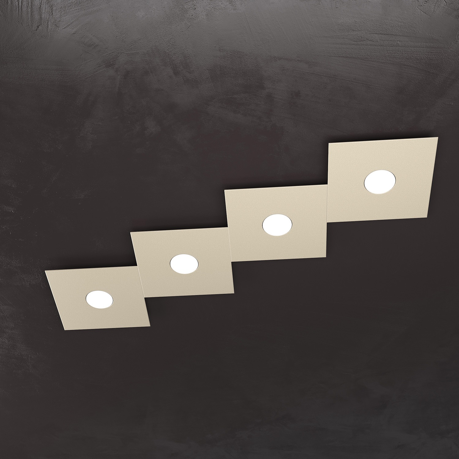 Lampada 4 luci formata da quattro lastre quadrate di metallo verniciato in finitura sabbia.. Queste lampade sono componibili e personalizzabili, così puoi creare infinite forme e mix di colori. I componenti base sono due: uno con sorgente luminosa (1156/1L) e uno solo decorativo (1156/1D). Questi componenti possono essere assemblati fra loro per creare infinite forme e mix di colori. Per comodità vengono proposti alcuni kit precomposti con codice dedicato all' interno del sito. La presente collezione in quanto componibile è indicata per risolvere problemi di decentramento tra punto luce e zona da illuminare. Un altro punto di forza del prodotto consiste nel non utilizzare dei led integrati ma una lampadina Gx53 che, una volta montata, arriva a filo della lastra metallica e può essere facilmente sostituita dall’esterno. Scopri la Serie Eccentric e lasciati ispirare dalla sua versatilità e qualità.Questo articolo è disponibile in diverse finiture e/o dimensioni. E' possibile indicarlo nell'apposito campo NOTE presente in conclusione di ordine oppure contattarci dopo aver effettuato l'ordine.