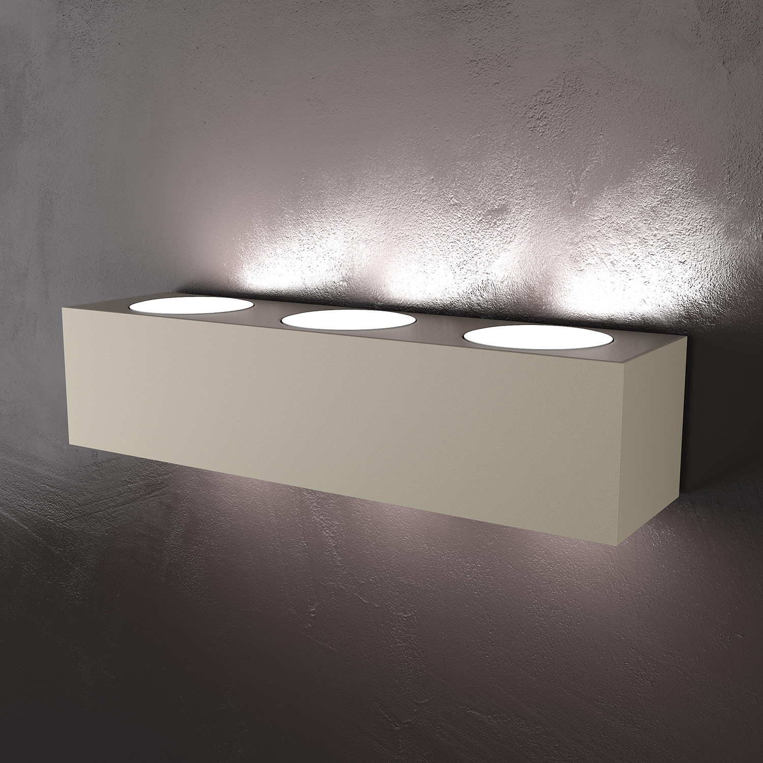 Applique 6 luci rettangolare in metallo biemissione finitura sabbia.. Un punto di forza del prodotto consiste nel non utilizzare dei led integrati ma una lampadina Gx53 che, una volta montata, arriva a filo della lastra metallica e può essere facilmente sostituita dall’esterno. Scopri la Serie Eccentric e lasciati ispirare dalla sua versatilità e qualità. Disponibile anche nella versione grigio antracite.Questo articolo è disponibile in diverse finiture e/o dimensioni. E' possibile indicarlo nell'apposito campo NOTE presente in conclusione di ordine oppure contattarci dopo aver effettuato l'ordine.