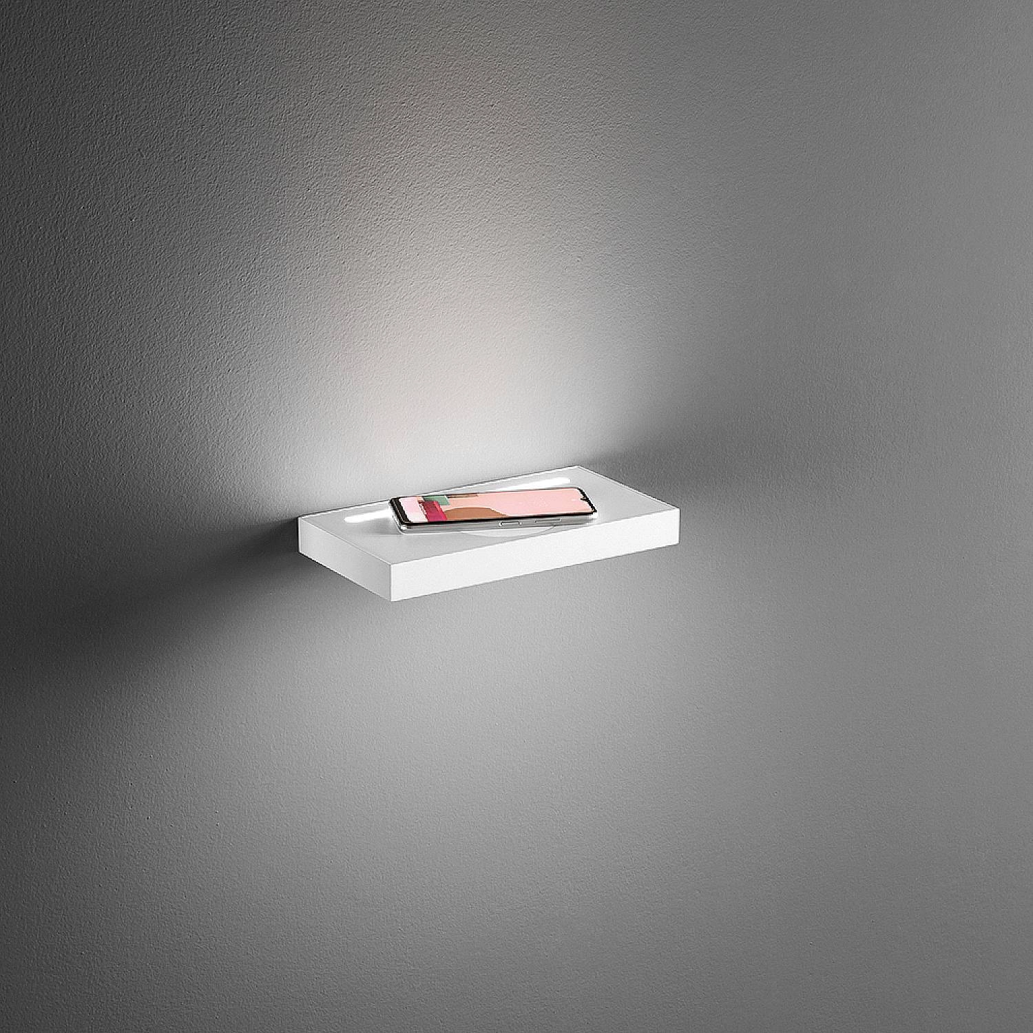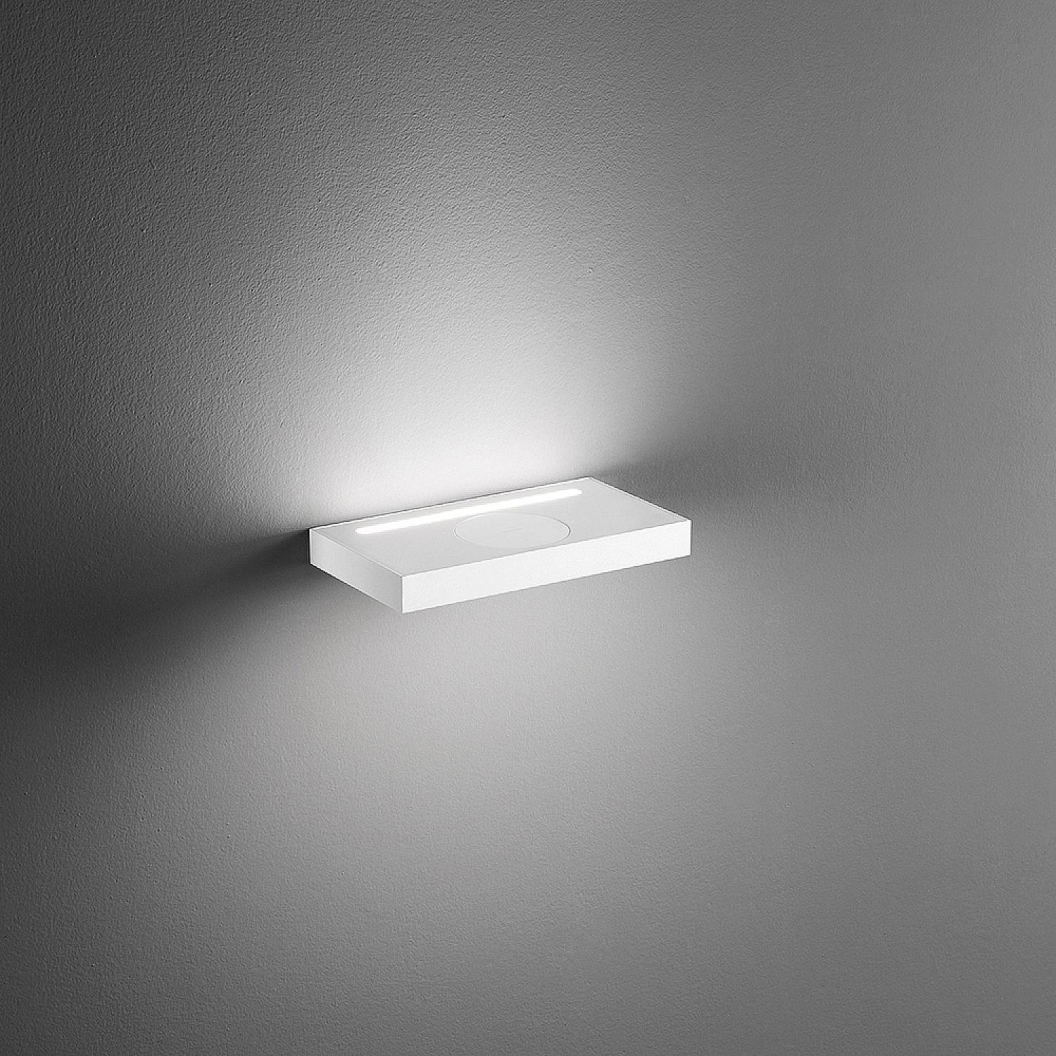 Applique in metallo e alluminio bianco opaco Led 10W+18W 800LM+1440LM 3000K L28 × 3 × Pr.15cm carica batterie wireless e porta USB. Applique con struttura in metallo e alluminio verniciato a polvere. Diffusori in acrilico satinato. Carica batterie wireless. Doppio interruttore