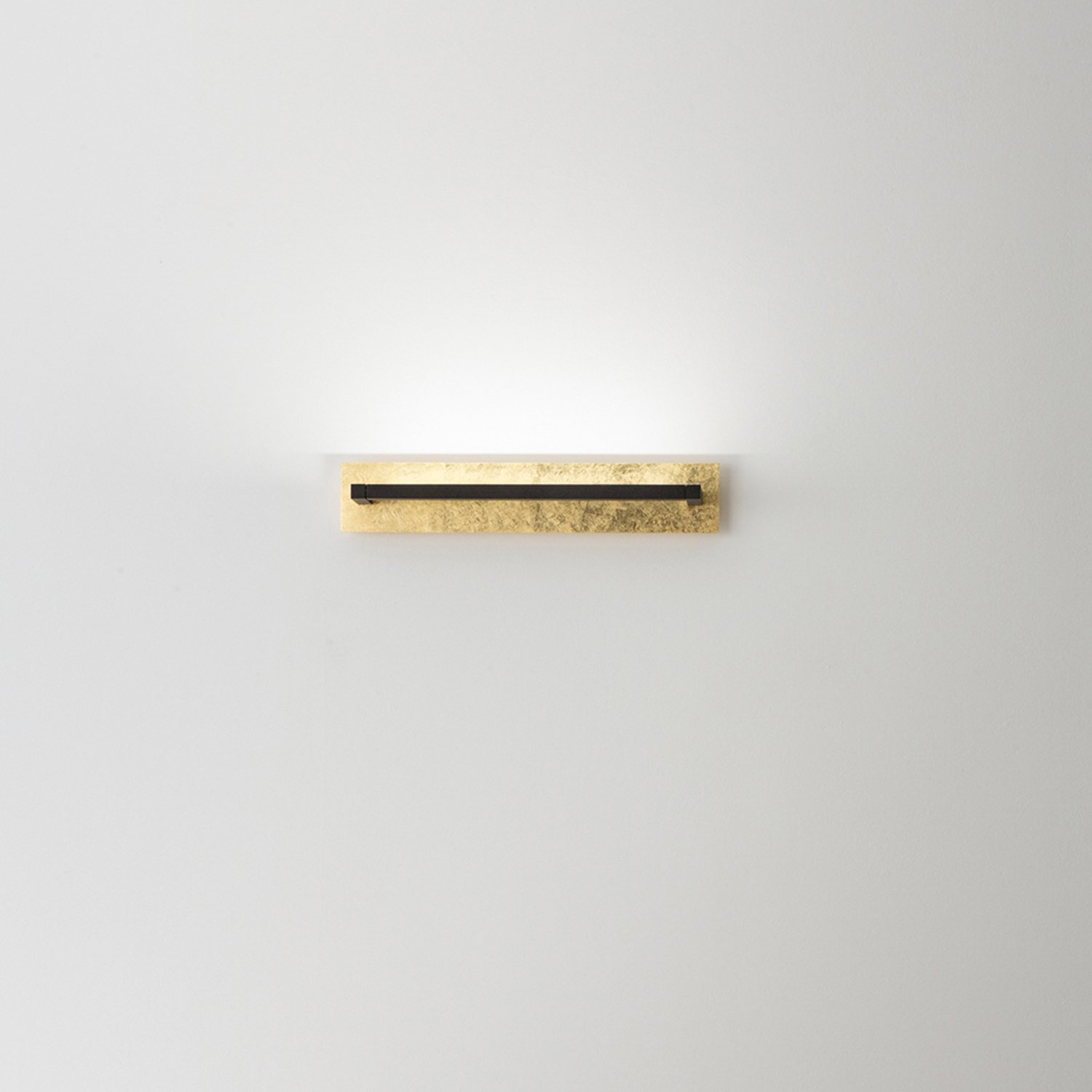 Collezione con struttura in metallo e alluminio verniciato a polvere con base in finitura foglia oro. Corpo luce orientabile e diffusore in acrilico satinato. Colore: nero opaco + foglia oro L.63xL.12 x Pr.12 cm LED 18W CCT 2700K 3000K 4000K CRI.80 220-240V 50/60Hz IP20 - Classe I 1440Lm lumen prodotto 2566Lm lumen sorgente 30.000h durata led