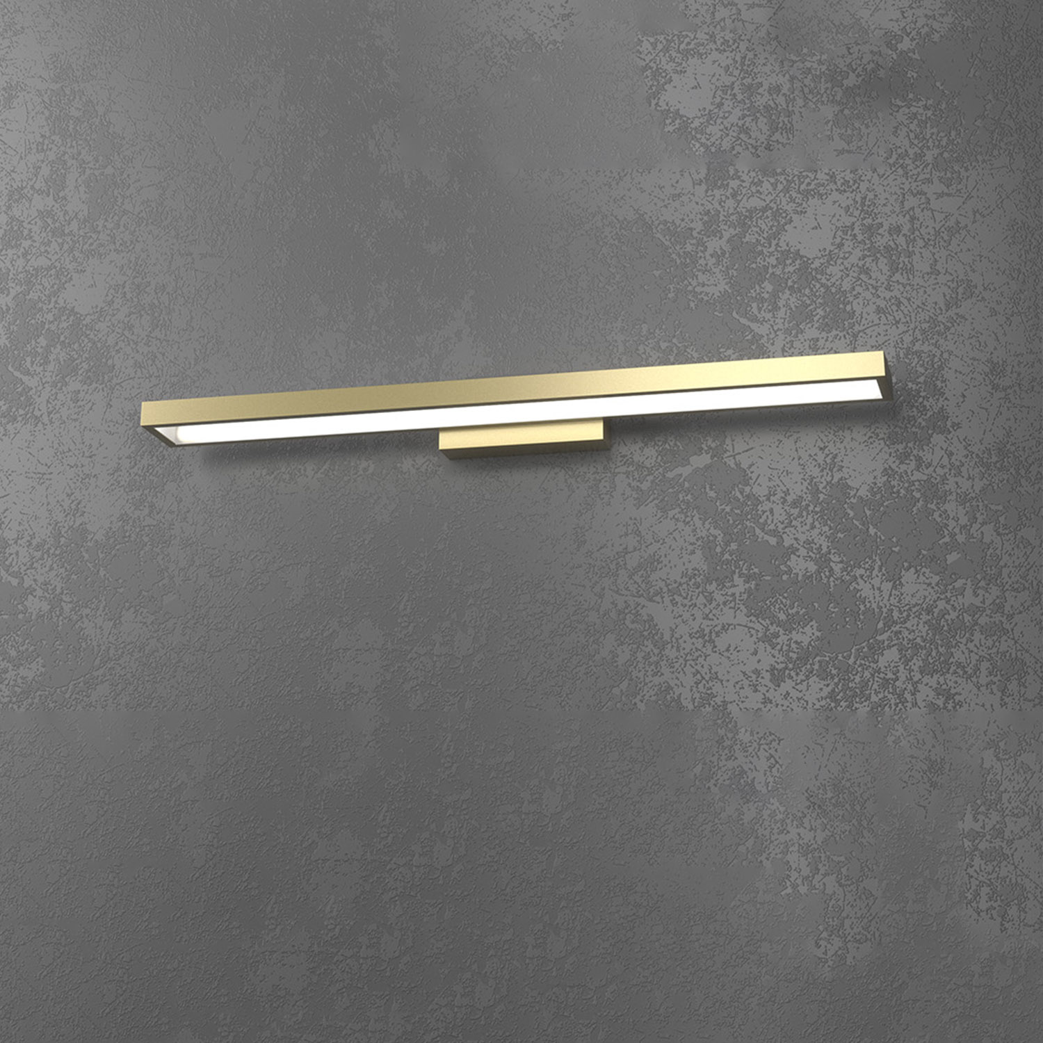 Applique realizzata con un profilo di alluminio di colore oro.. I punti di forza del prodotto sono l'importante resa luminosa e la possibilità di scelta della colorazione della luce fra 3000K e 4000K che può essere scelta in fase di installazione (mediante degli switch ed eventualmente anche cambiato in seguito) essendo il dispositivo dotato contemporaneamnete di led di entrambi le colorazioni.Questo articolo è disponibile in diverse finiture e/o dimensioni. E' possibile indicarlo nell'apposito campo NOTE presente in conclusione di ordine oppure contattarci dopo aver effettuato l'ordine.