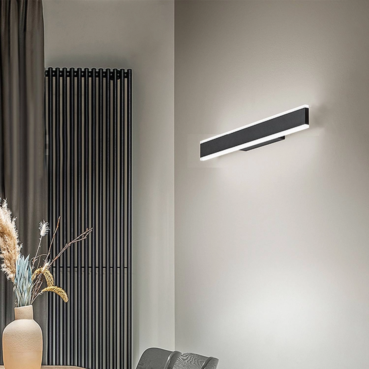 Applique LED struttura in metallo verniciato di colore nero, con un diffusore opaco in acrilico che garantisce una diffusione uniforme della luce. Dal design moderno e minimalista, adatta per l'illuminazione di interni, tecnologia LED, che rende questa applique è molto efficiente dal punto di vista energetico e ha una lunga durata. La luce emessa può essere facilmente regolata grazie al dimmer integrato, che permette di creare diverse atmosfere luminose a seconda delle esigenze.