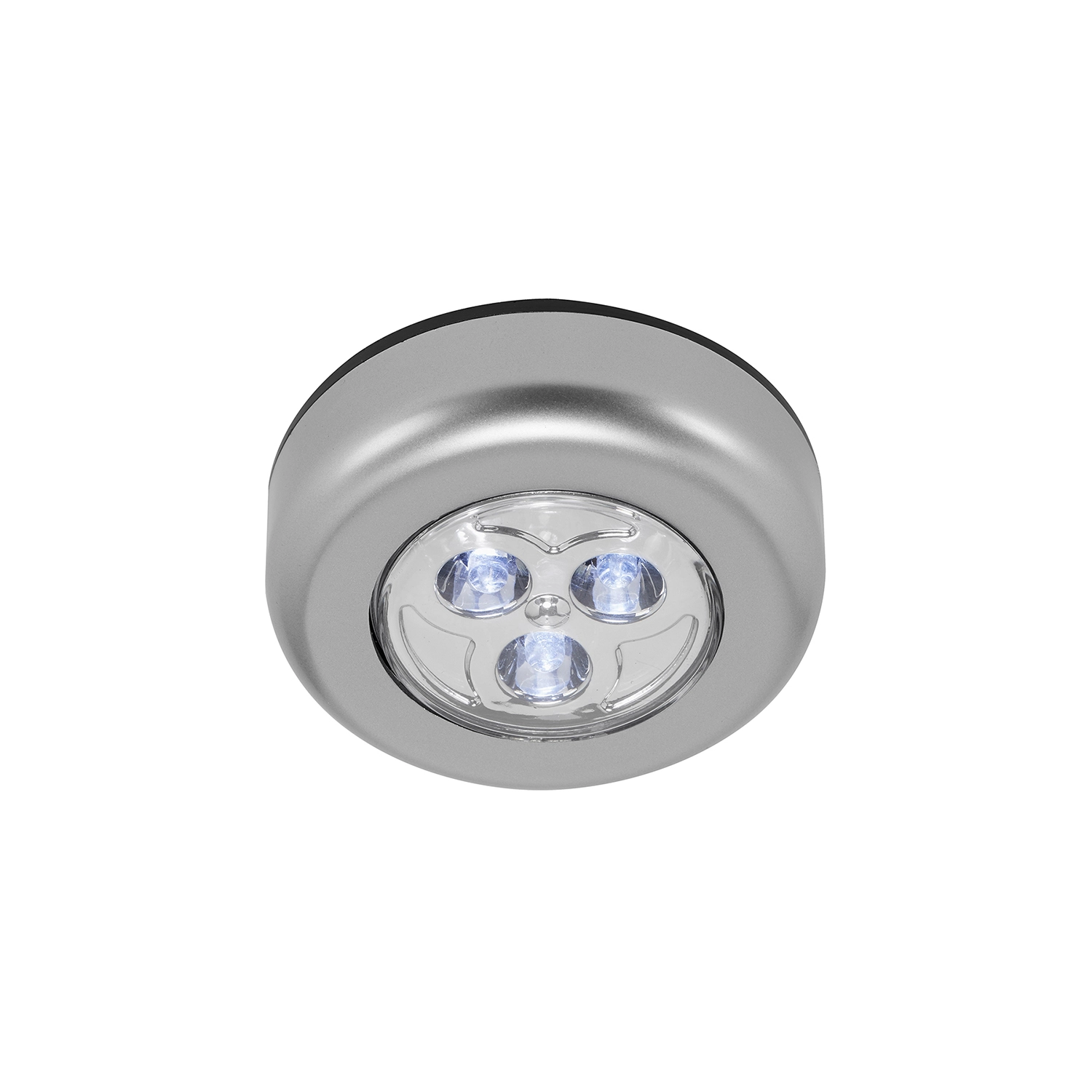 LERO - Set 3 luci da armadio in plastica color titanio - 3 LED 0,3watt 15lumen 6500K - on/off a pressione - batterie incluse.