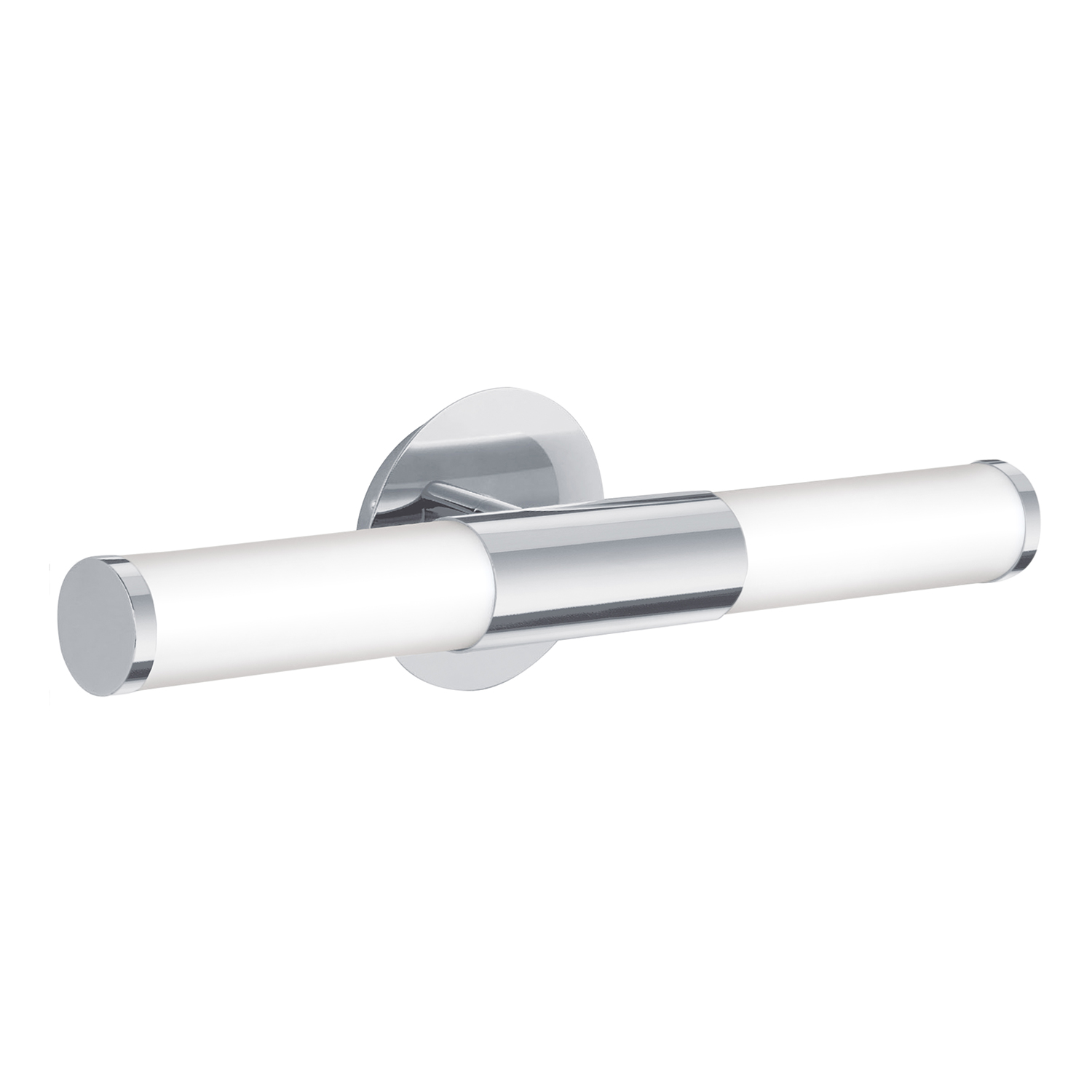La lampada PALMERA a LED è realizzata in metallo cromato con due elementi tubolari in vetro opaco bianco.. Grazie alla protezione dagli spruzzi d'acqua (IP44) può essere impiegata senza problemi in bagno, ad esempio sopra lo specchio. La lampada da parete si adatta perfettamente agli interni moderni e produce un'illuminazione elegante. Le lampadine (attacco E27) non sono comprese nella fornitura.