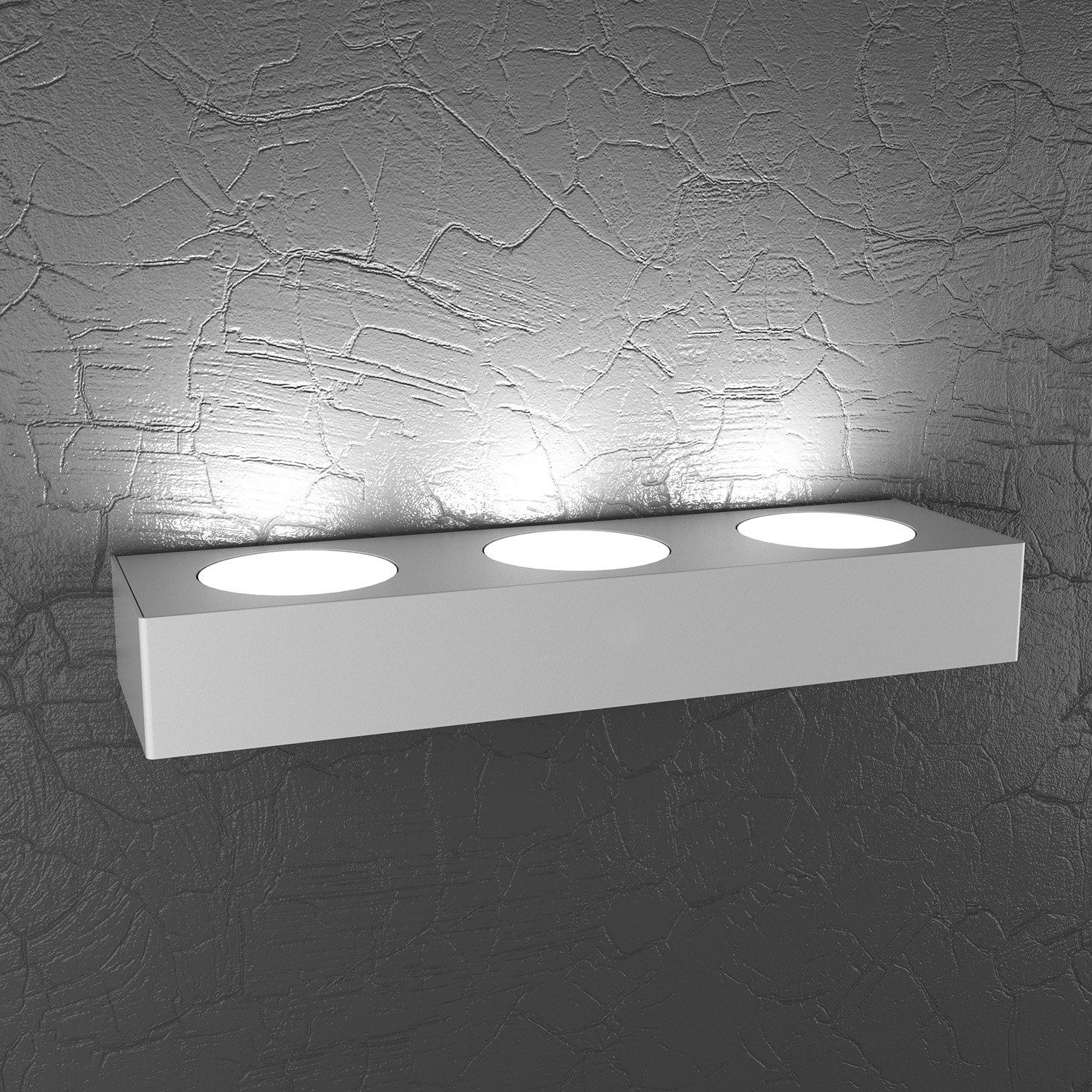 Applique 3 luci di finitura grigio, realizzata con lastre quadrate di metallo sulle quali sono state effettuate delle lavorazioni di fresatura.. Il punto di forza del prodotto consiste nel non utilizzare dei led integrati ma una lampadina Gx53 che, una volta montata, arriva a filo della lastra metallica e può essere facilmente sostituita dall’esterno.Questo articolo è disponibile in diverse finiture e/o dimensioni. E' possibile indicarlo nell'apposito campo NOTE presente in conclusione di ordine oppure contattarci dopo aver effettuato l'ordine.