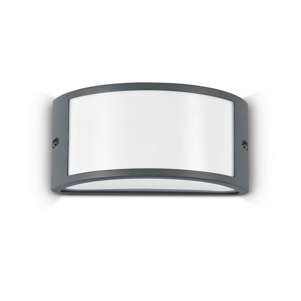 Applique a 1 luce per esterni con corpo luce in alluminio pressofuso verniciato a polveri antracite.. Diffusore bianco in materiale acrilico. Disponibile in varie finiture.