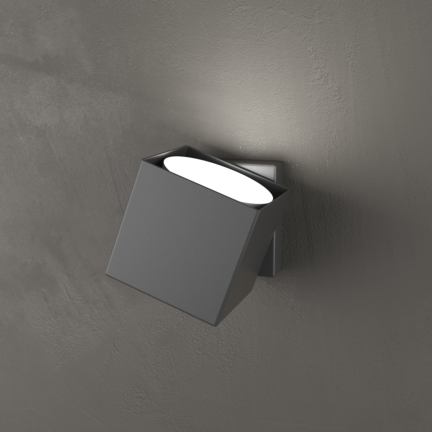 Collezione ROTATIONLA LUCE ORIENTABILE E PERSONALIZZATAApplique 1 luce realizzate con cubi di metallo roteanti a 360° di finitura grigio antracite.. Queste lampade t..