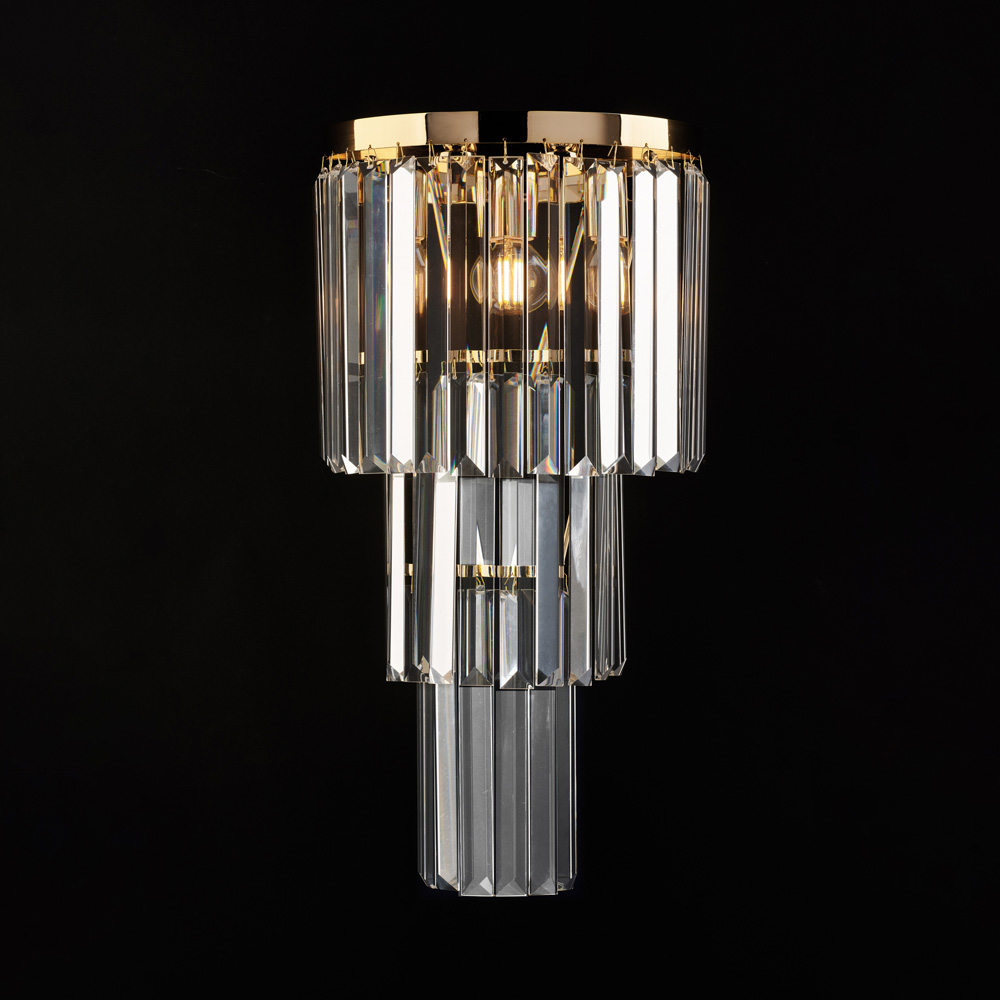 Applique Moderna Schuber Metallo Oro E Cristallo 2 Luci E14