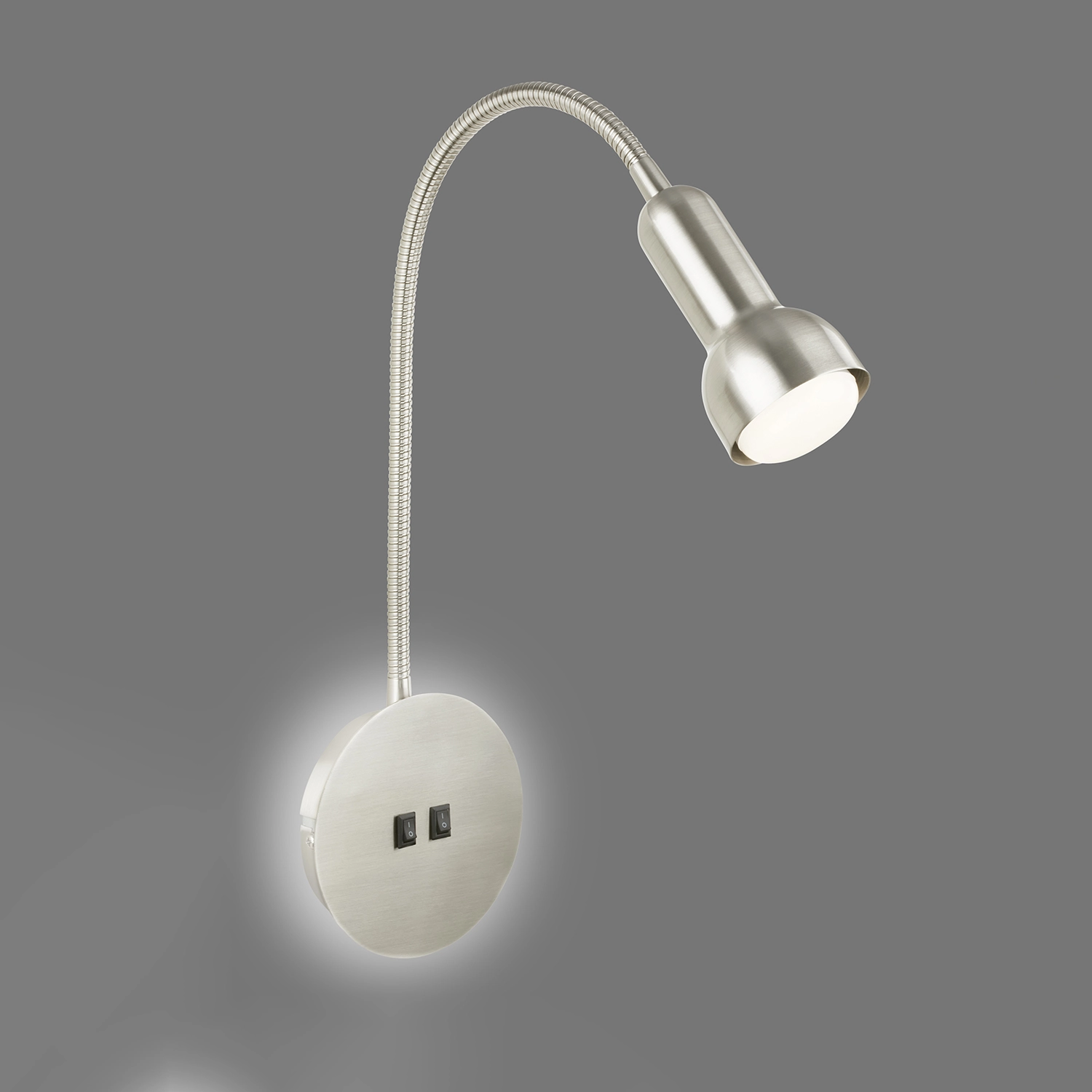 SENG - Applique 47 x 37,5cm. braccetto flessibile con 1 x E14/R50 lampadina esclusa - effetto retroilluminazione sulla base con LED 3watt 150lumen 2700K - doppio interruttore - non dimmerabile - metallo_plastica/nickel satinato