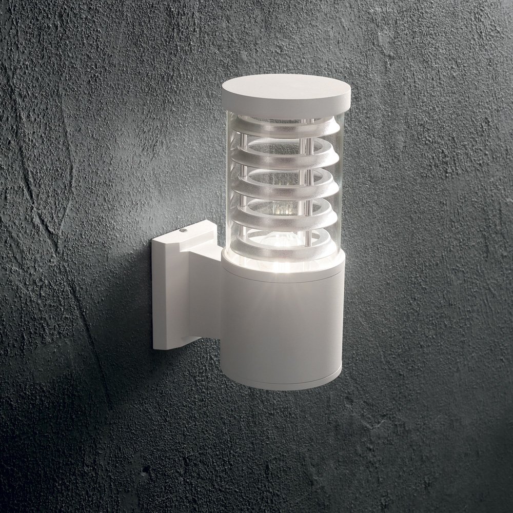 Collezione TRONCOESTERNI AL TOPApplique a 1 luce con corpo luce in alluminio pressofuso rifinito in vernice bianca. Diffusore in vetro pirex con elementi interni in ..