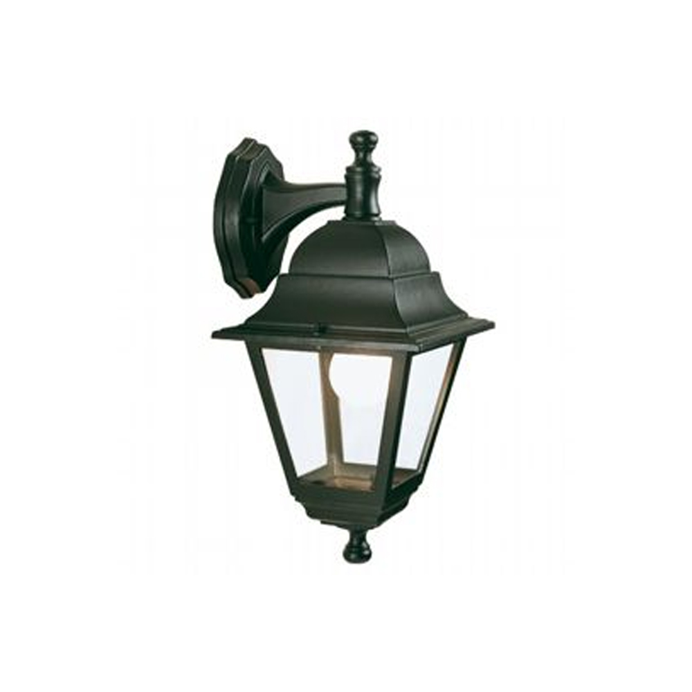 Applique per esterno a 1 luce con struttura in pressofusione di alluminio color nero e diffusore in vetro trasparente, rivolta verso il basso.. Adatta per lampada con altezza massima 170 mm (non inclusa). Disponibile anche in bianco argento, di altezza maggiore (42 cm) e nella versione rivolta verso l'alto.