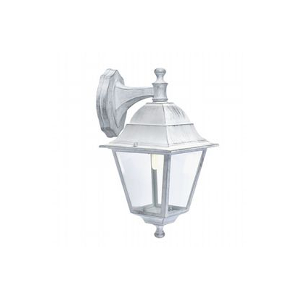 Applique Media Da Esterno Old Alluminio E Vetro Bianco E Arg. 1 Luce E27