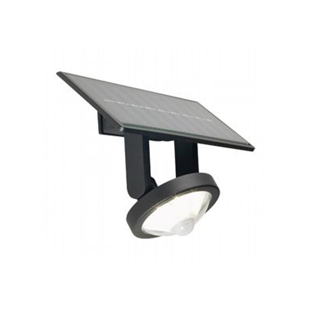 Lampada solare da parete in termoplastico, grigio antracite goffrato, la sua versatilità rende possibile l’installazione dove non arriva la rete elettrica. Grazie al pannello solare tramite il quale ricarica la batteria al suo interno. Illuminazione a LED 3.7V con batteria al litio ricaricabile 2200mAh (inclusa), sensore di movimento e crepuscolare. Luce diretta con diffusore in termoplastico trasparente. LED 1.