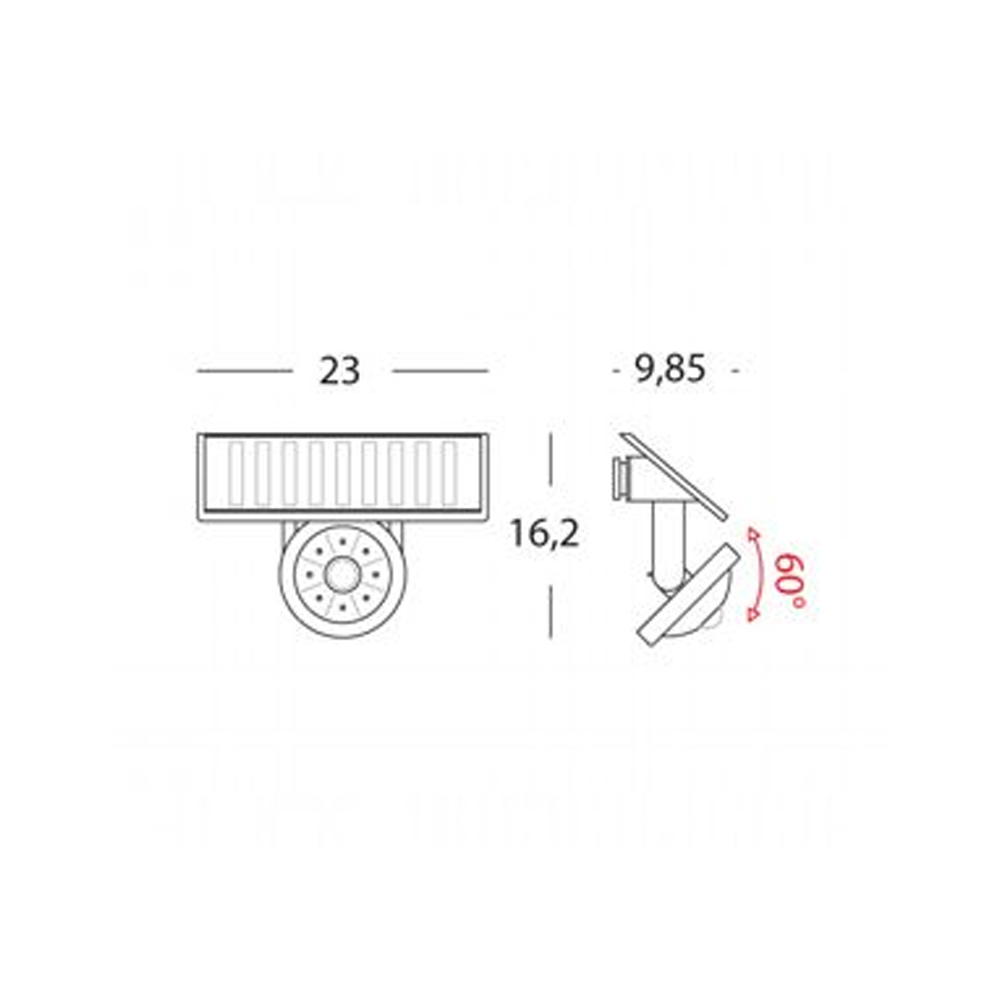 Collezione PixelSENSORE DI MOVIMENTO E CREPUSCOLARELampada solare da parete in termoplastico, grigio antracite goffrato, la sua versatilità rende possibile l’install..