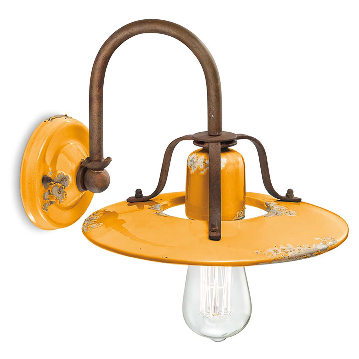 Collezione COUNTRYL'ARMONIA TRA IL VISSUTO ED IL NUOVOApplique 1 Luce diam.25 cm in ceramica con finitura vintage giallo scrupolosamente lavorata a mano da artigiani..