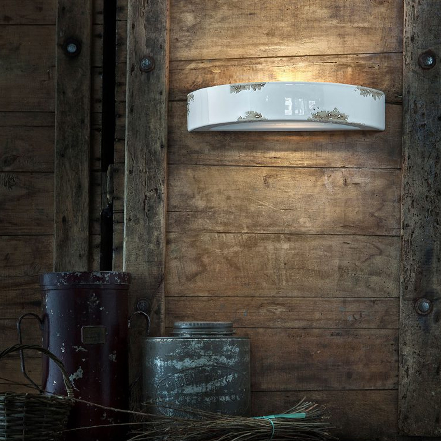 Collezione VINTAGEL'IMPRONTA DEL PASSATO PER CHI HA VOGLIA DI STUPIREApplique 1 Luce in ceramica con finitura vintage bianco lavorata a mano da artigiani specializza..