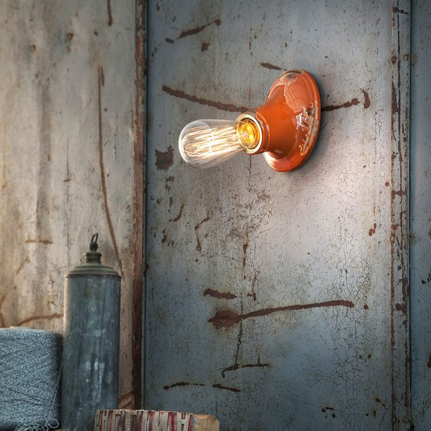 Applique Vintage Ceramica Arancio Con Filamento 1 Luce E27