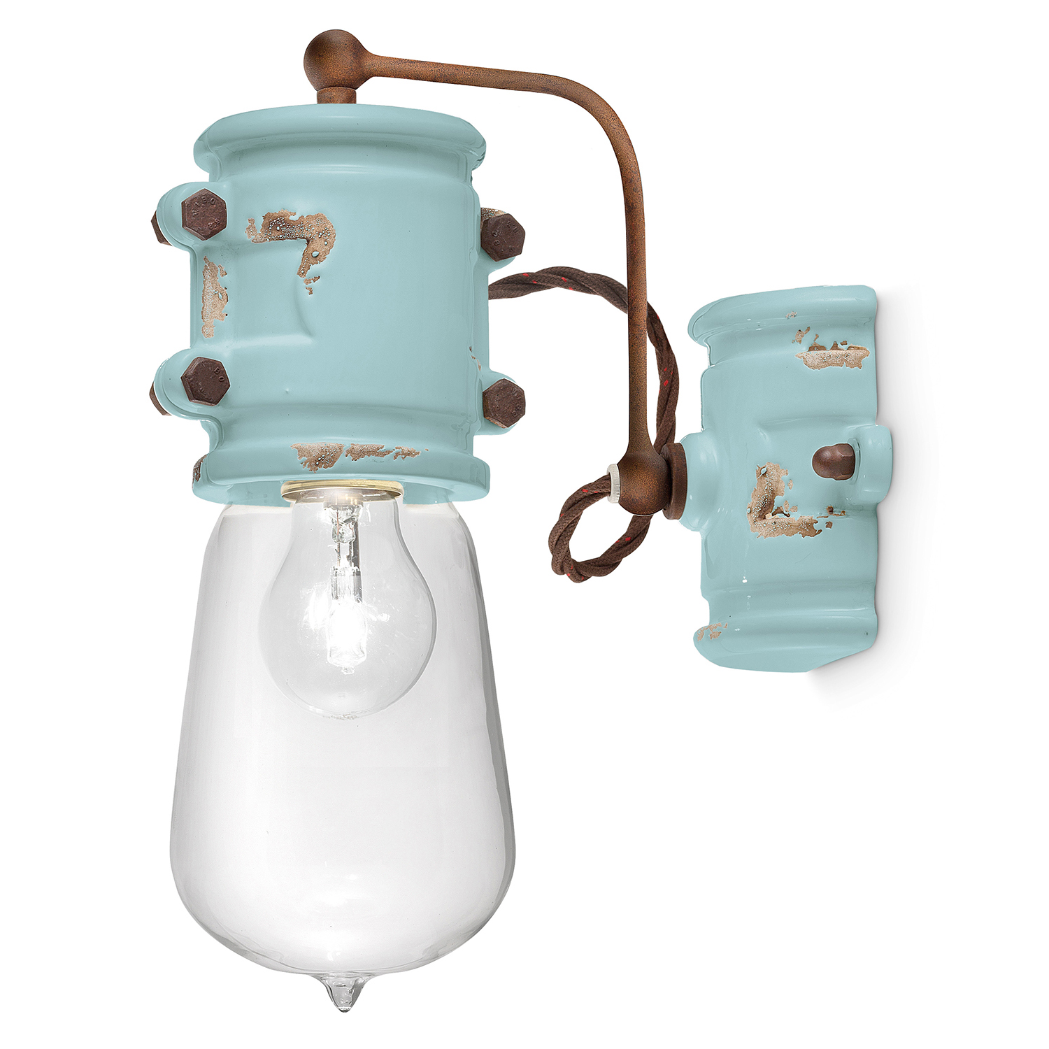 Applique Vintage Urban Ferro E Ceramica Azzurro 1 Luce E27 25Cm