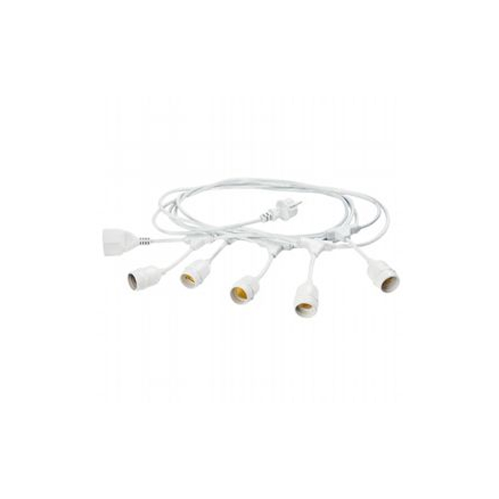 Collezione EnjoyDAI RISALTO AI TUOI MOMENTI OUTDOORCavo per esterno in termoplastico bianco, lungo 5 mt con 5 portalampada E27 completo di spina e presa schuko.. Co..