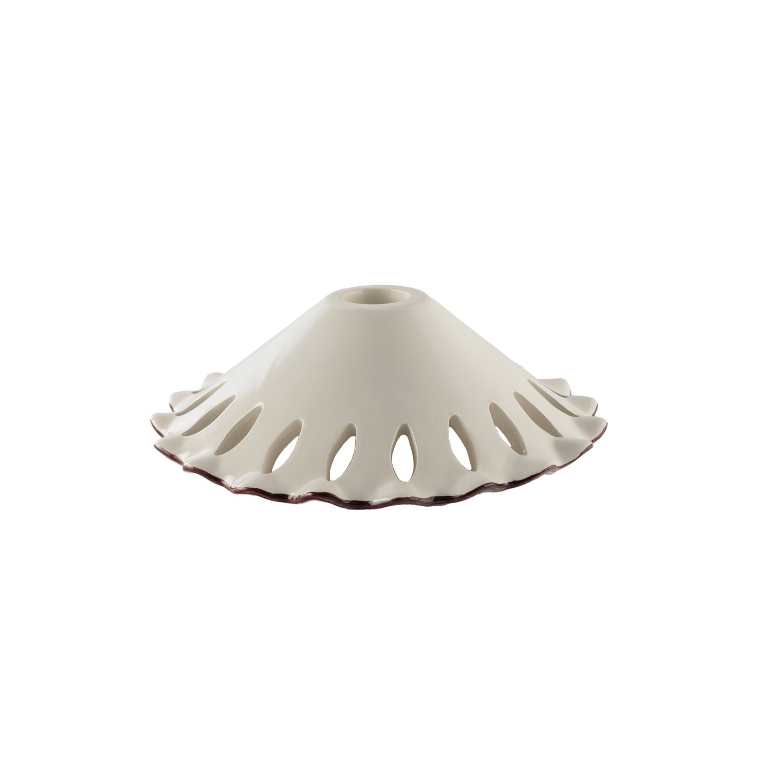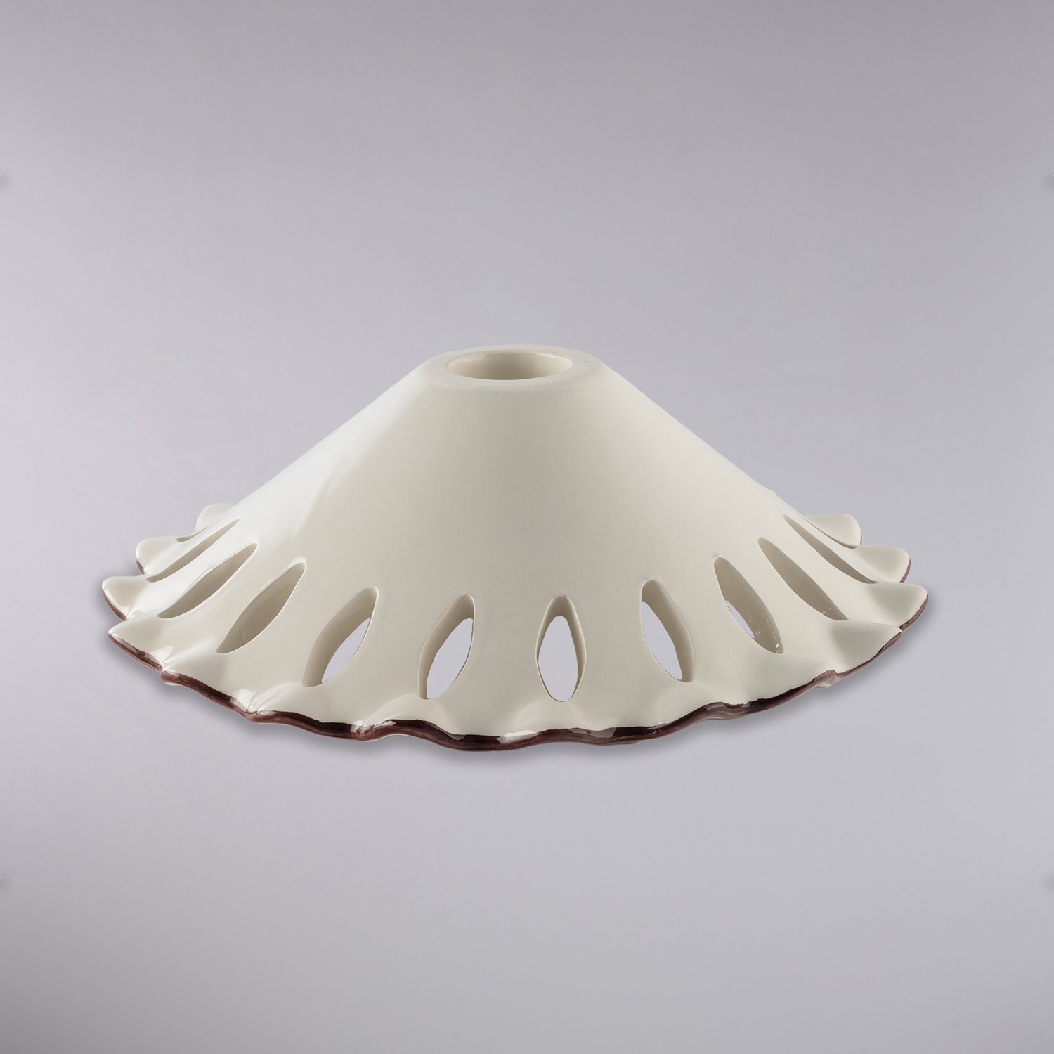 Diffusore in ceramica traforata decorata a mano in bianco e marrone, diametro 30 cm..