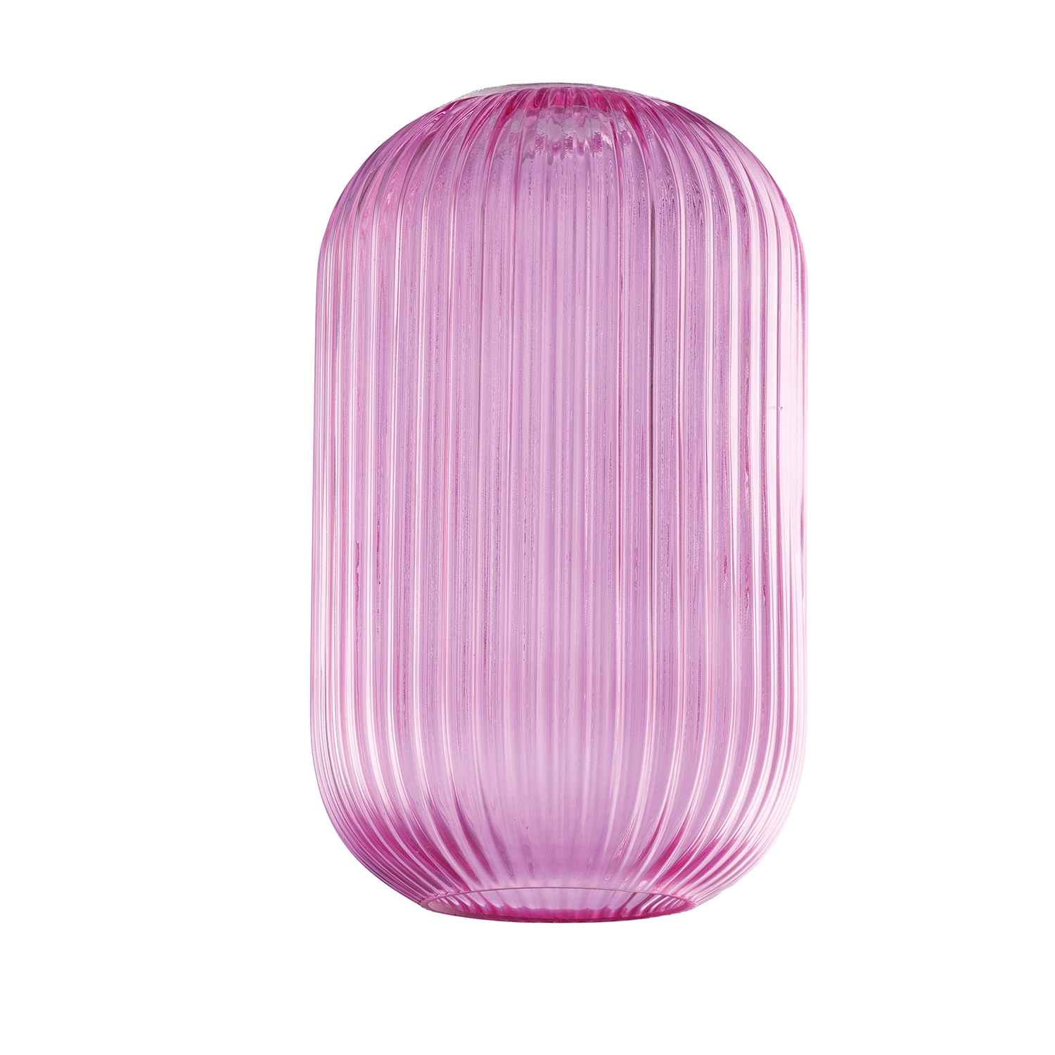 Diffusore in vetro rosa con decoro rigatura in rilievo effetto plissè..