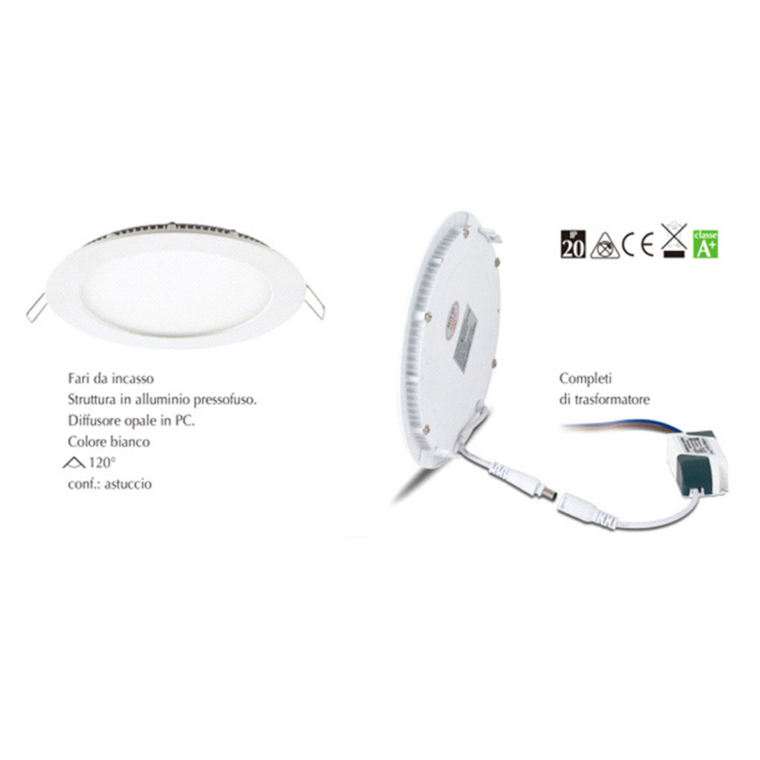 Faro da incasso a LED 24W - 1800Lumen - Luce Calda 3000K - Ang. Flusso Luce 120° - Ø Faro 300mm - Ø Foro 280mm - IP20 - Ghiera Bianca.