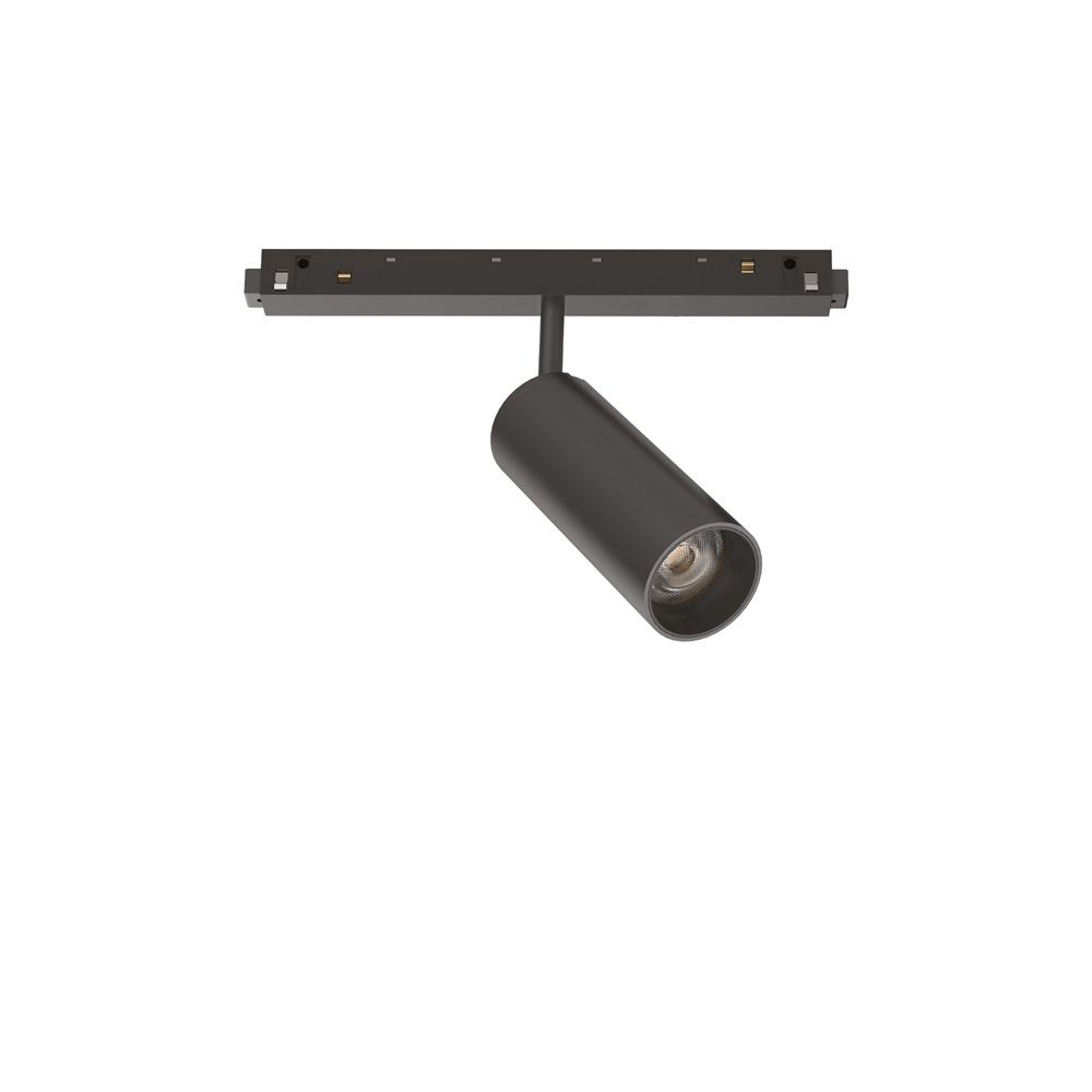 Faretto orientabile montato su binario per interni con sorgente LED integrata da 12W ed emissione di luce diretta.. Sistema composto da un profilo in alluminio estruso ed elementi di illuminazione a fissaggio magnetico.