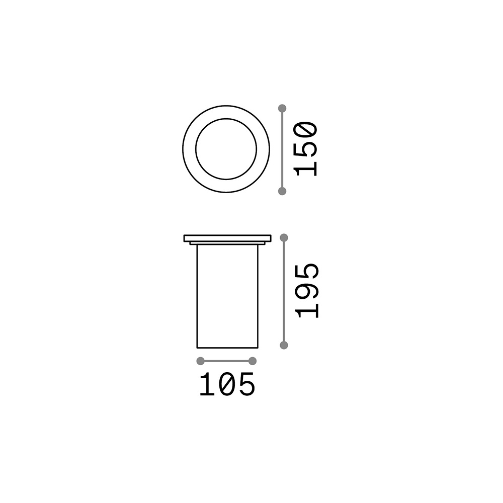 Spot rotondo da incasso al suolo o parete. Corpo luce esterno in PVC. Parabola riflettente in alluminio.. Cornice blocca vetro in acciaio satinato. Vetro trasparente. Disponibile in due dimensioni.