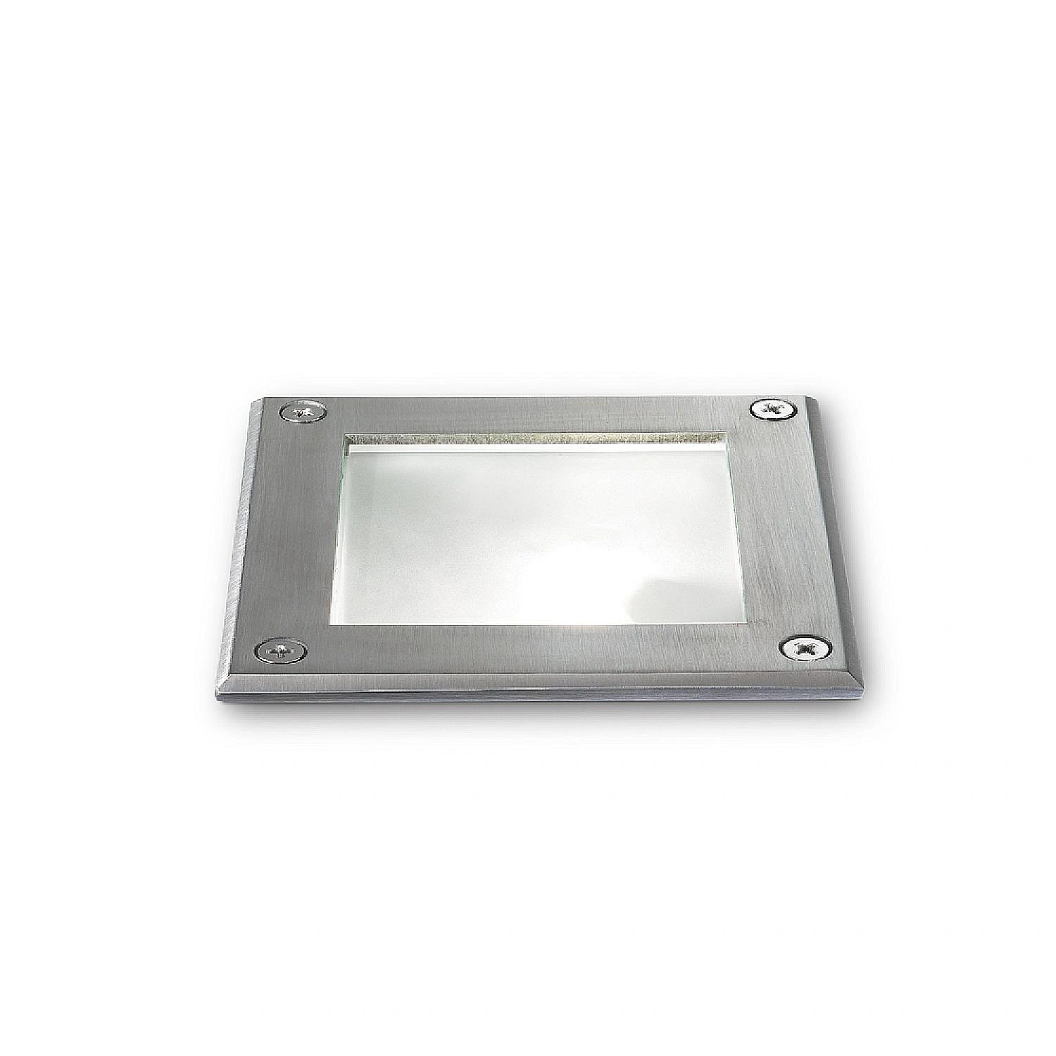 Spot quadrato da incasso al suolo o parete. Corpo luce esterno in PVC. Parabola riflettente in alluminio. Cornice blocca vetro in acciaio satinato.. Vetro trasparente. Disponibile in due dimensioni.
