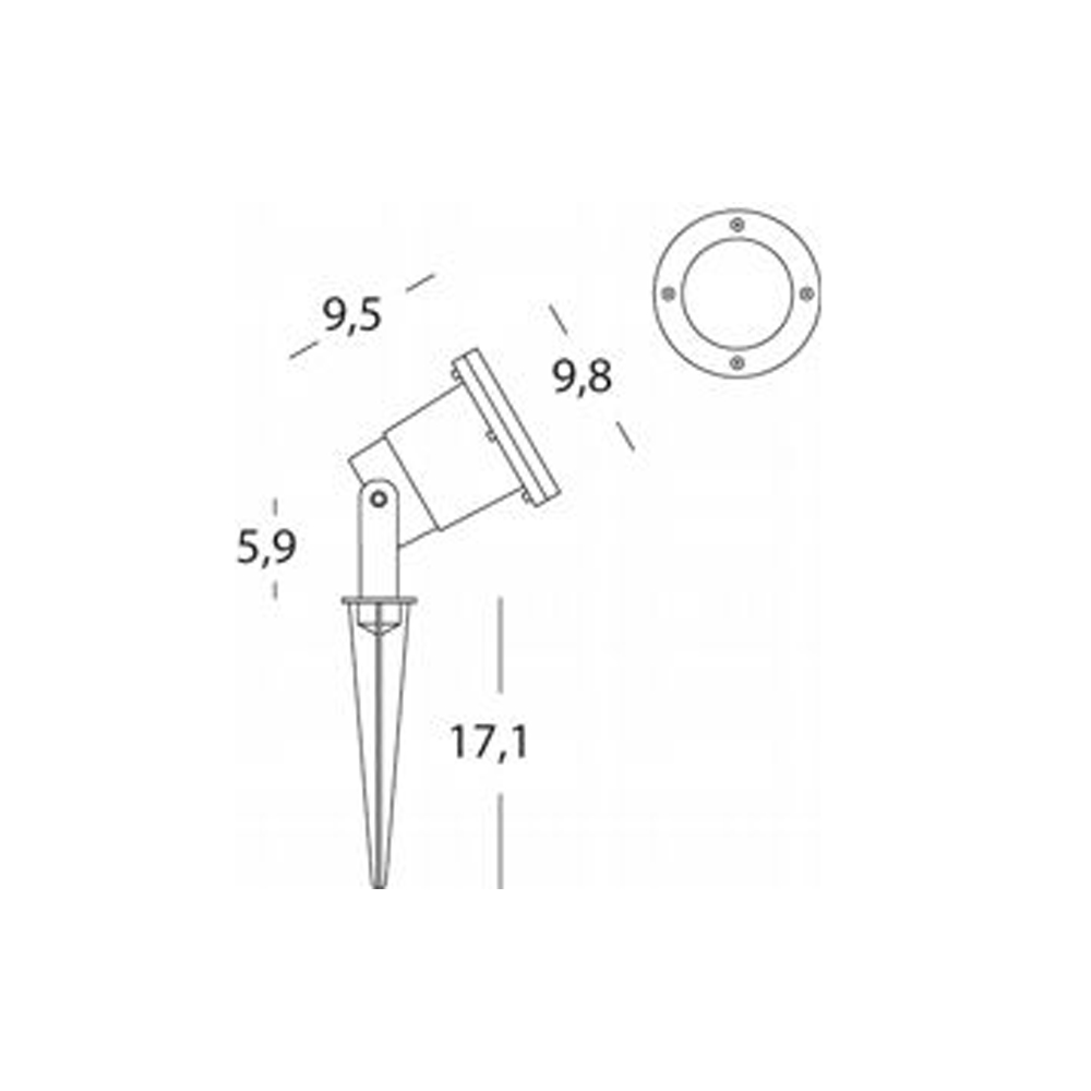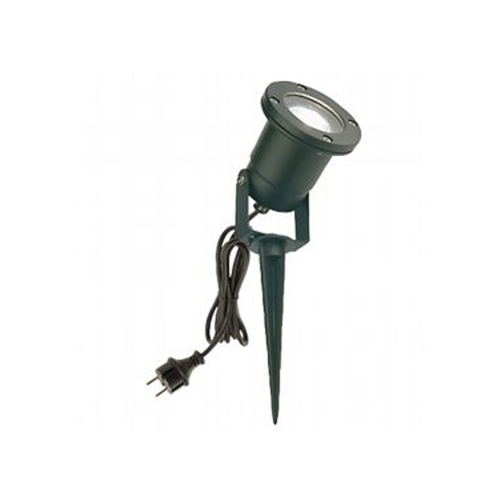 Faretto orientabile 1 luce con struttura in alluminio pressofuso, color nero.. Dotato di staffa per fissaggio, picchetto e cavo da 2 metri H05RN-F 3G1 con spina schuko. Ideale per illuminare giardini o utilizzabile lungo i viali come comodi segnapassi. Le sue caratteristiche lo rendono perfetto anche per la facciata di un’abitazione dove crea grande effetto visivo. Alimentazione 230V.