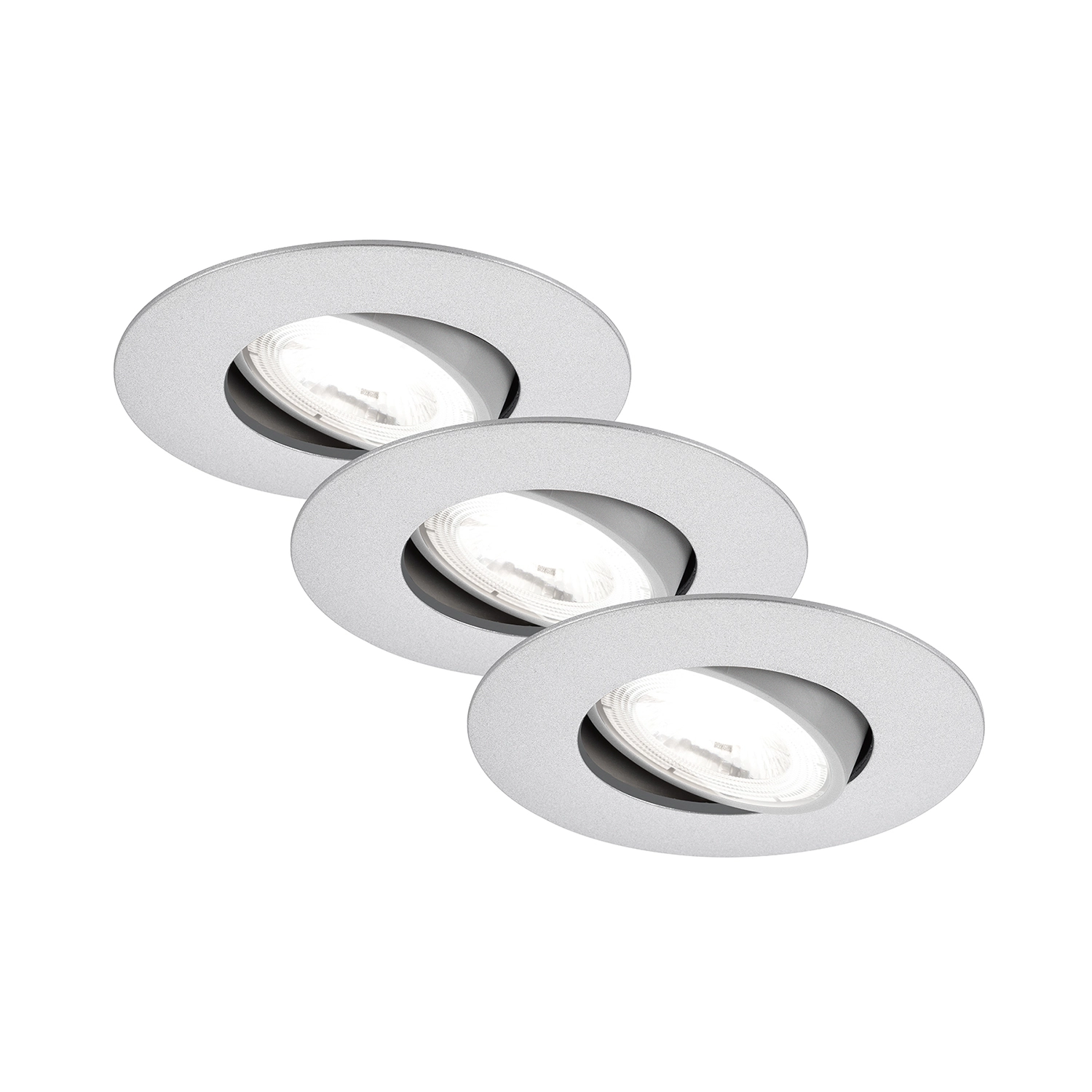 KULANA A - Set 3 faretti da incasso a LED ultraefficiente e ultrapiatto - modulo con classe di efficienza energetica A Plastica/cromo opaco. inclusa 1 scheda LED 2W 385lm 4.000K Durata utile 50.000 h, Ra>=80 non dimmerabile, orientabile IP23 90x24mm (PxA) Dimensioni di installazione: 68x30mm (PxH)