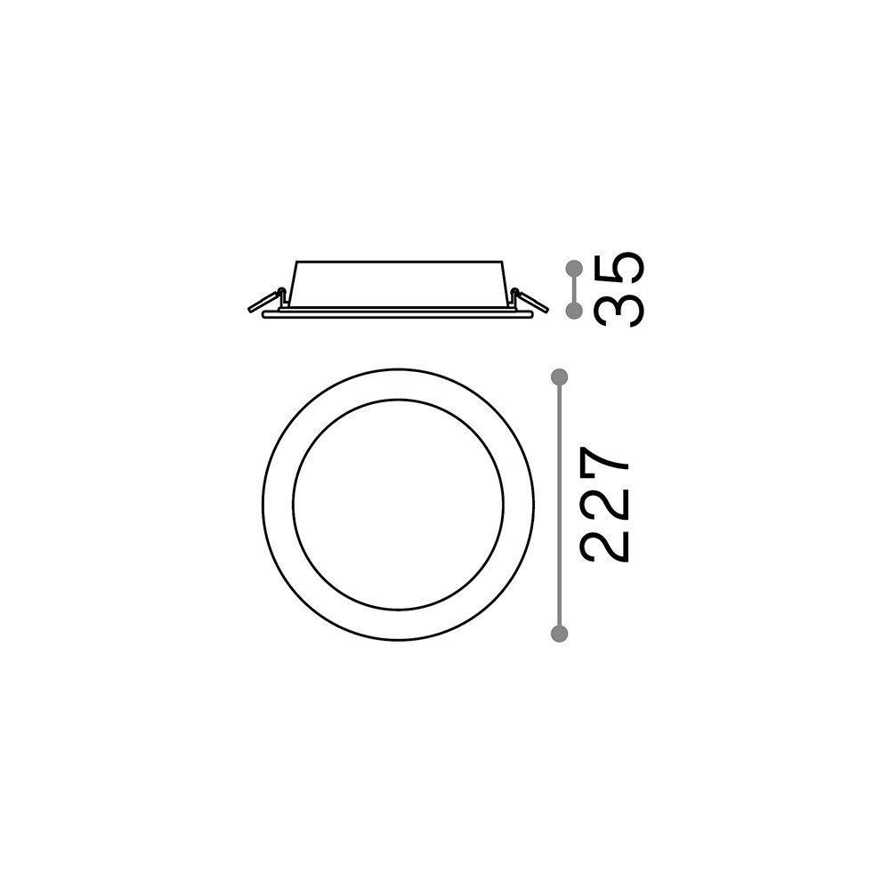 Faretto tecnico da incasso a forma rotonda. Montatura esterna e corpo luce in alluminio verniciato a polveri.. Diffusore centrale fisso in materiale plastico con LED integrato. Disponibile in tre misure.