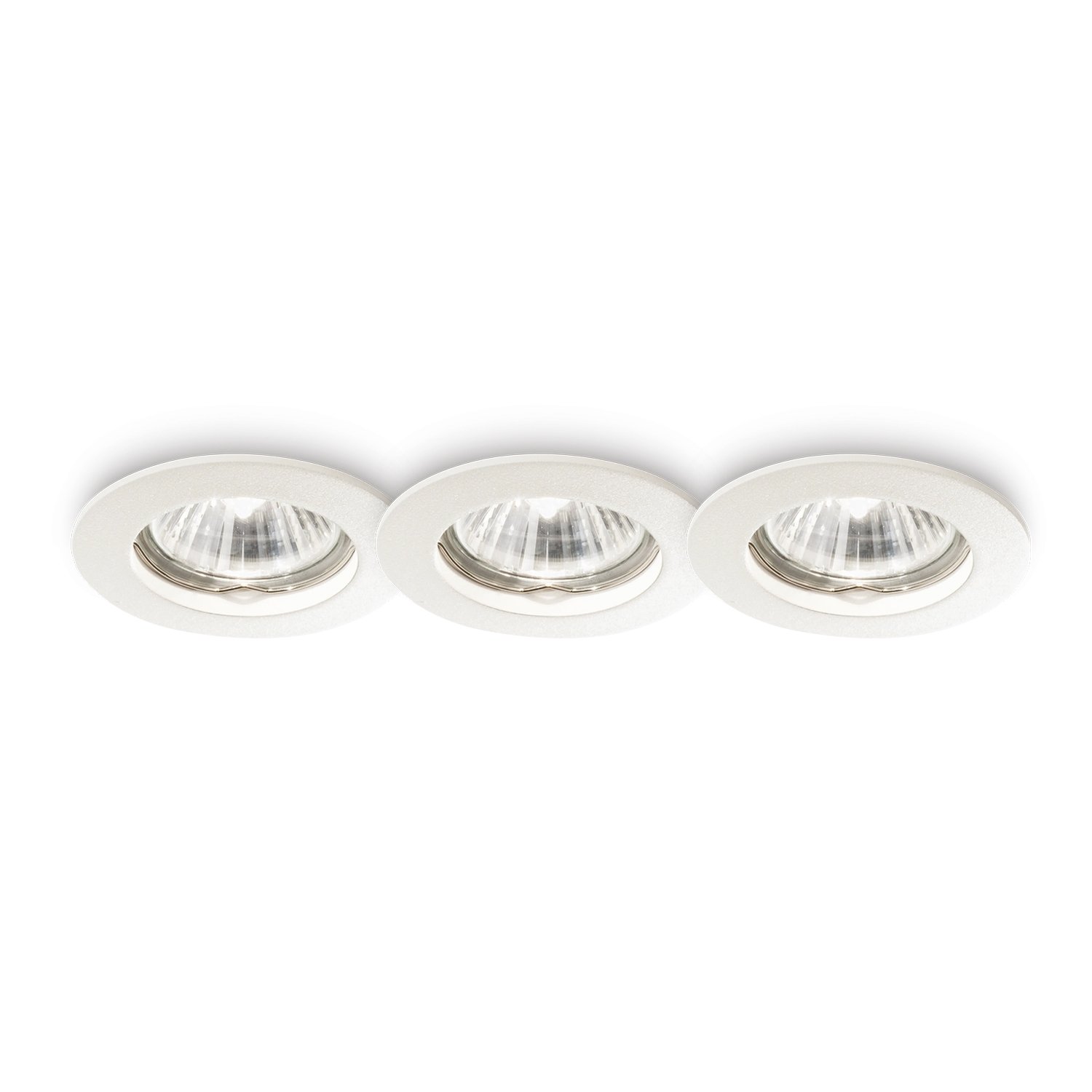 3 Faretti ad incasso moderno a 1 luce, con montatura circolare in alluminio bianco; disponibile in varie finiture. Elemento centrale portalampade fisso.