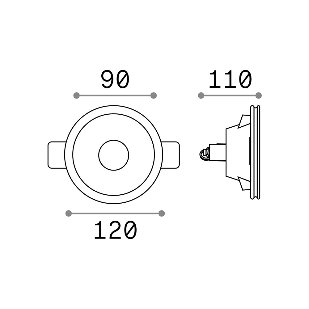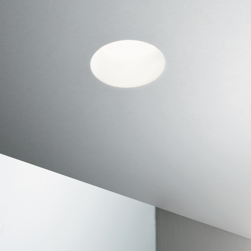 Faretto ad incasso tondo diam.12 cm in gesso bianco ideale per soffitti in cartongesso. Dotato di attacco GU10 (lampadina max 50W non inclusa)..