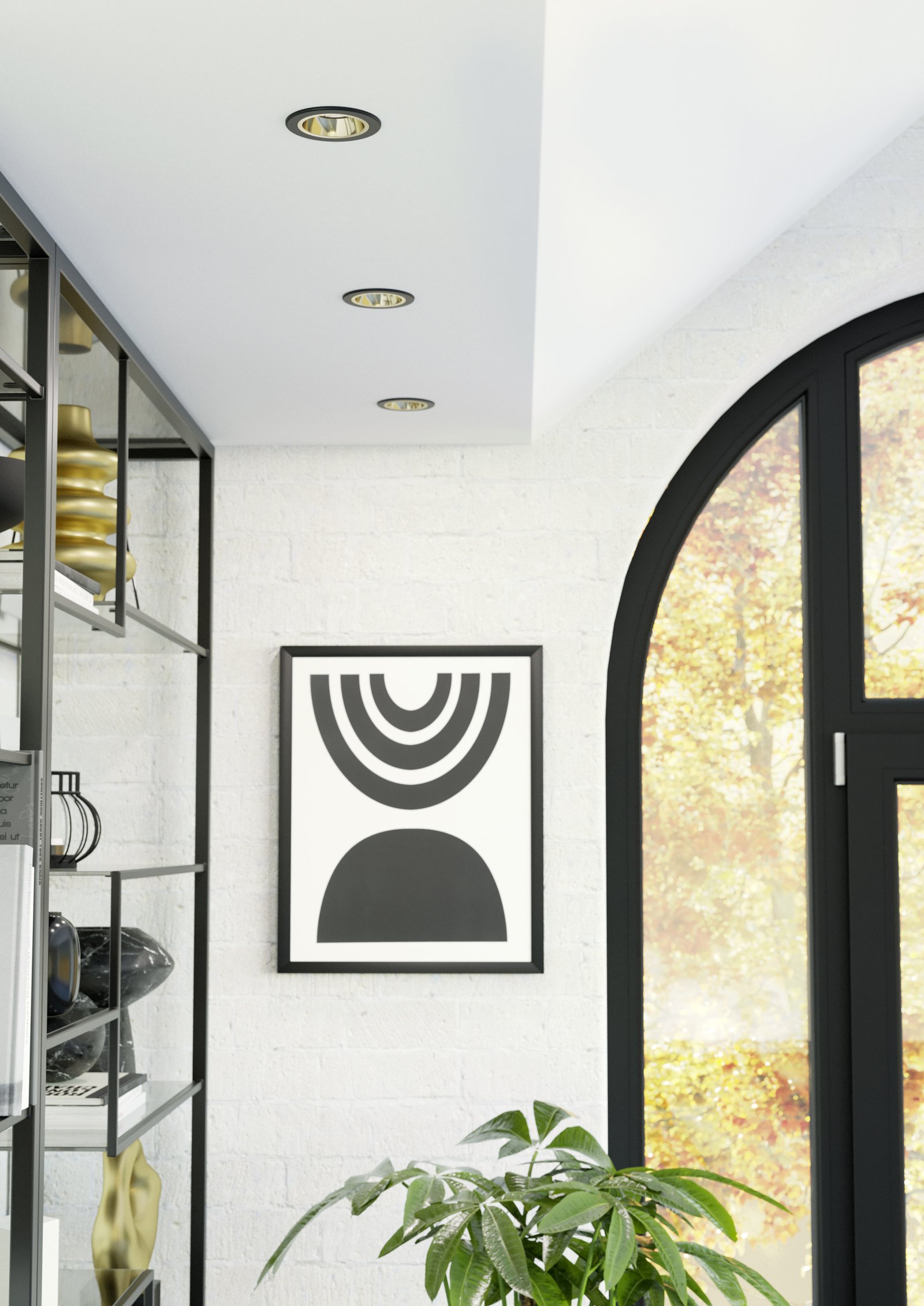 Collezione YEBRADESIGN FUNZIONALE E LUCE DI QUALITÀ La lampada da incasso YEBRA si distingue per la sua struttura in plastica nera con un diametro di 68 mm e una pro..