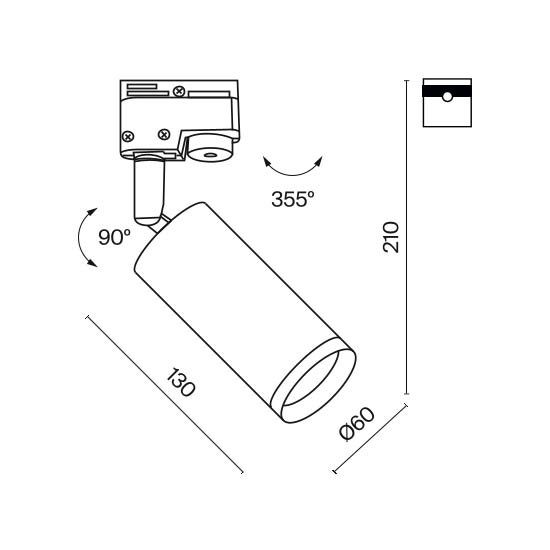 Corpo in metallo. Tonalità: bianco, nero, oro, grafite, oro opaco e lucido. La sorgente luminosa incassata offre comfort visivo e previene l'abbagliamento.. Meccanismo girevole per la regolazione del flusso luminoso. Lampadina di ricambio con attacco GU10 (non inclusa).