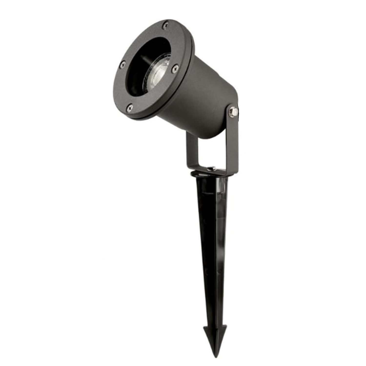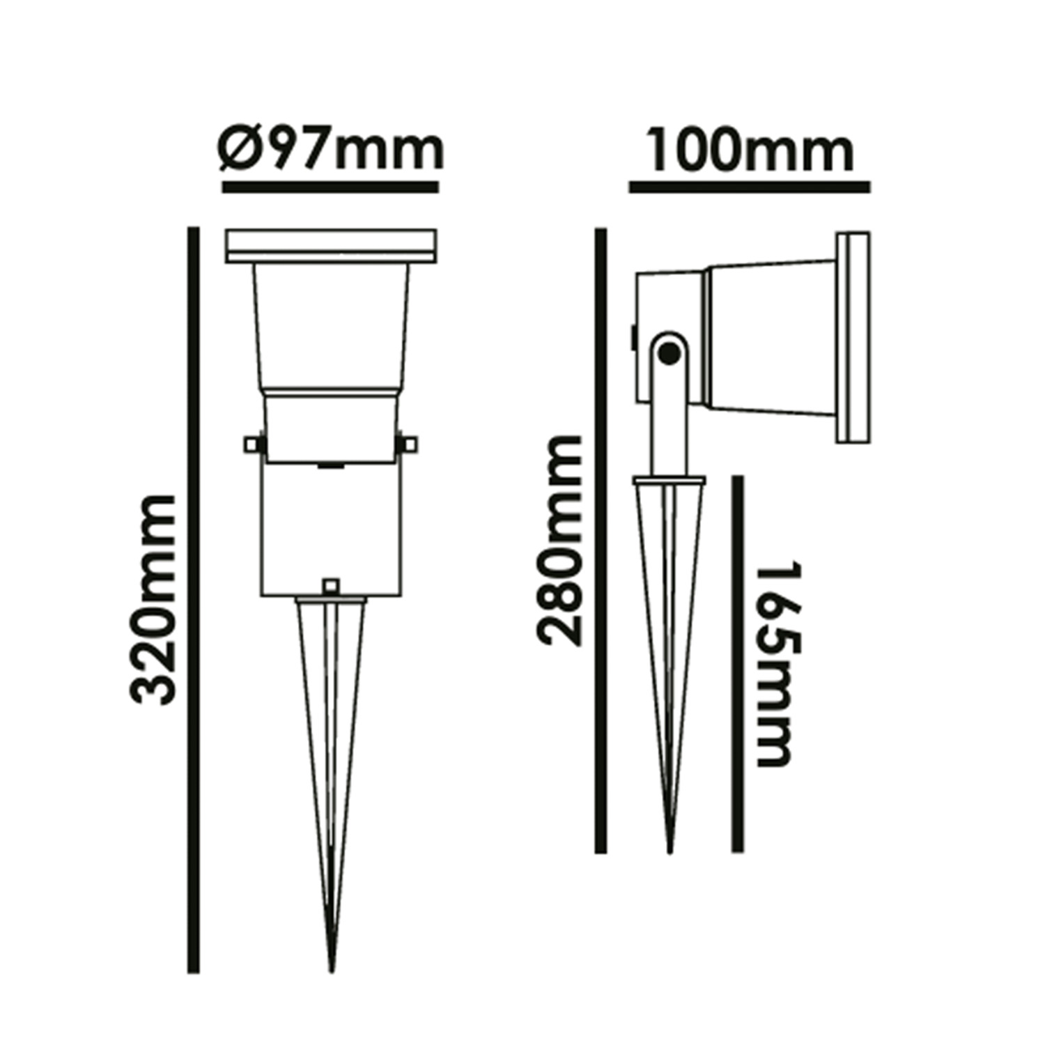 Faro proiettore, incluso di accessorio picchetto Struttura in alluminio pressofuso Diffusore in vetro trasparente Portalampada 1xGU10 Max 35W. (lampadina non inclusa) Tensione 220~240V-50Hz Colore: Nero Grado di protezione IP65