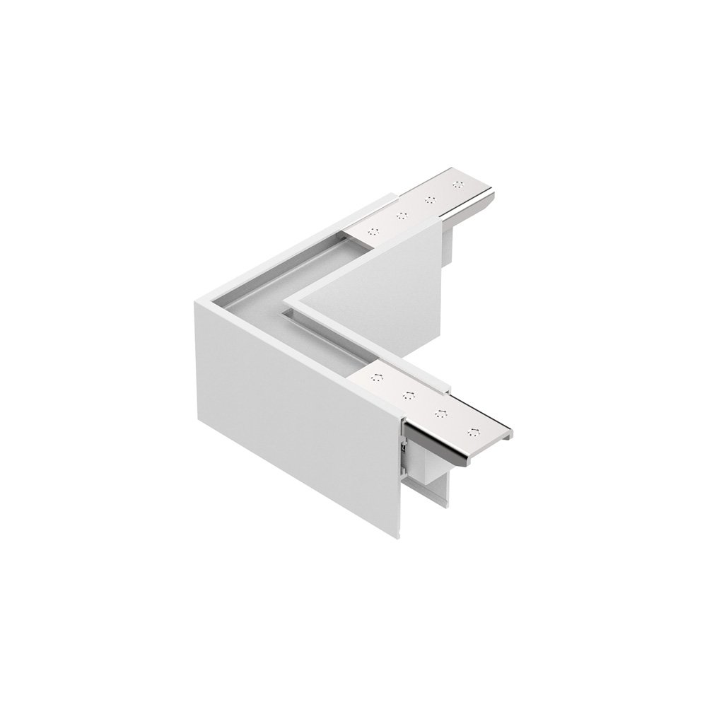 Collezione EGODIFFONDERE LA LUCE IN BASE ALLE PROPRIE ESIGENZESistema di connettore ad angolo per binario con profilo in alluminio estruso ed elementi di illuminazio..