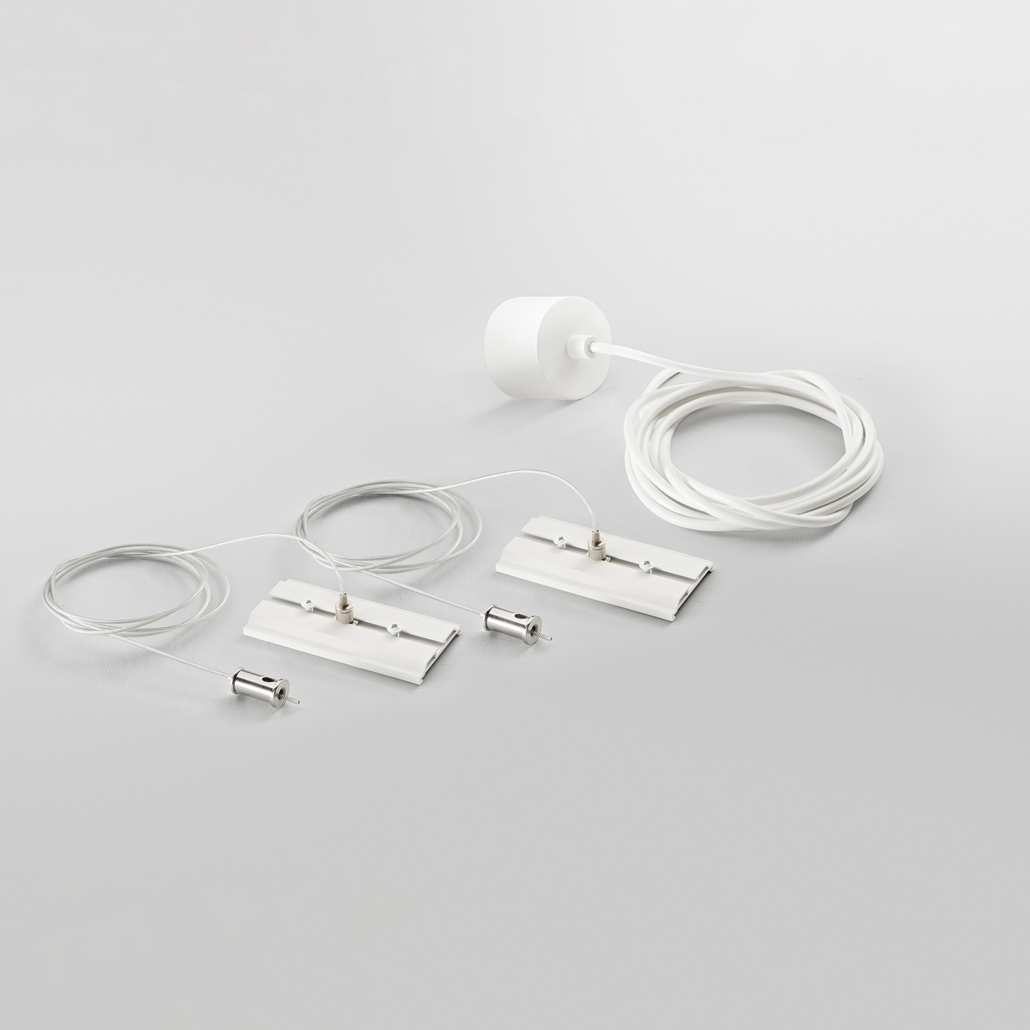 Kit sospensione per art. 8462 / 8464 (Serie GRID) Colore: bianco opaco Cavo alimentazione L. 300 cm Cavi supporto L. 200 cm.