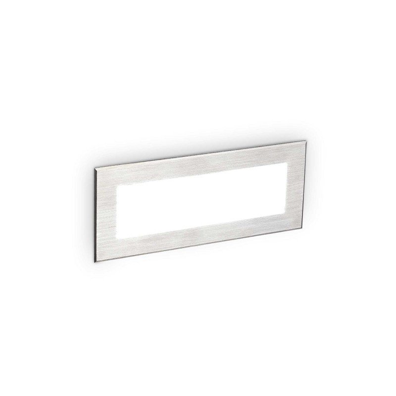 Lampada a parete con corpo luce a incasso cm.25 in alluminio pressofuso verniciato a polveri. Diffusore in vetro temperato serigrafato in bianco con cornice in acciaio inox spazzolato.Sorgente Led 8 W in nuance naturale 4000 K.